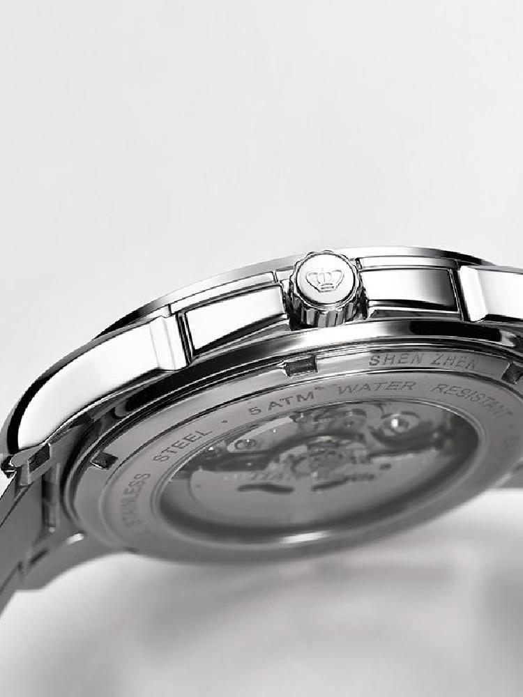 表冠有着细致工艺,小而优雅,尽显奢华。表底通透,精湛的工艺,仿佛在诠释着时间的艺术。n