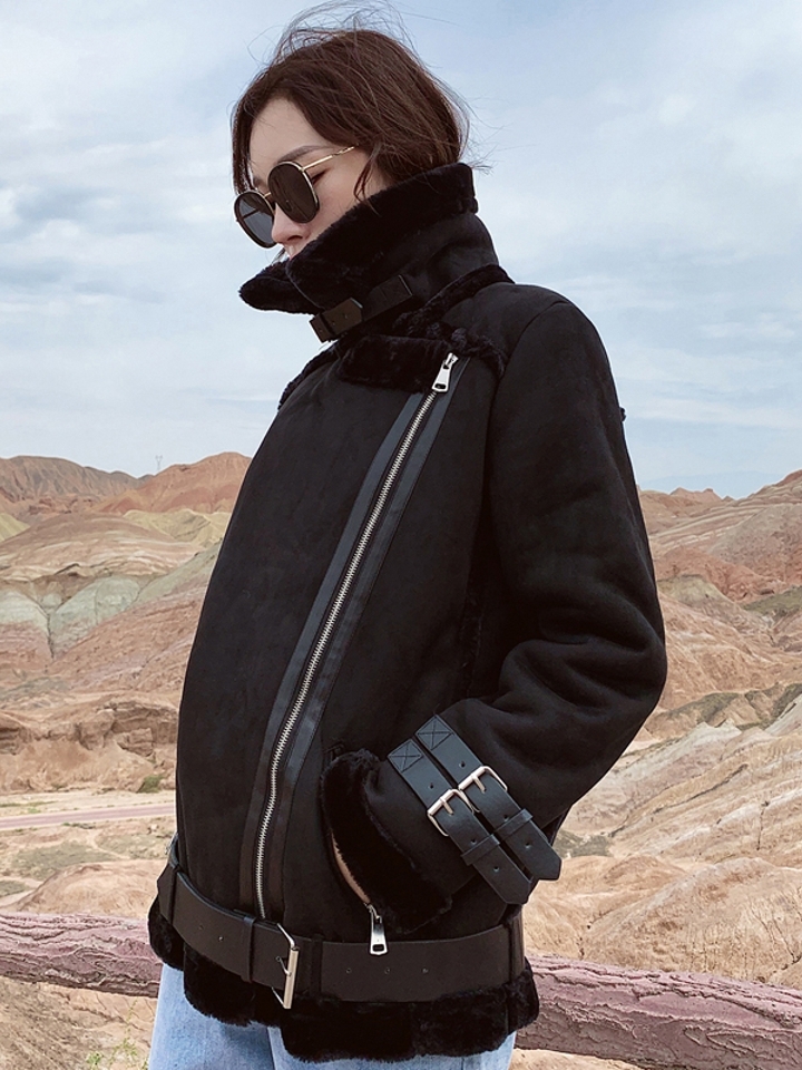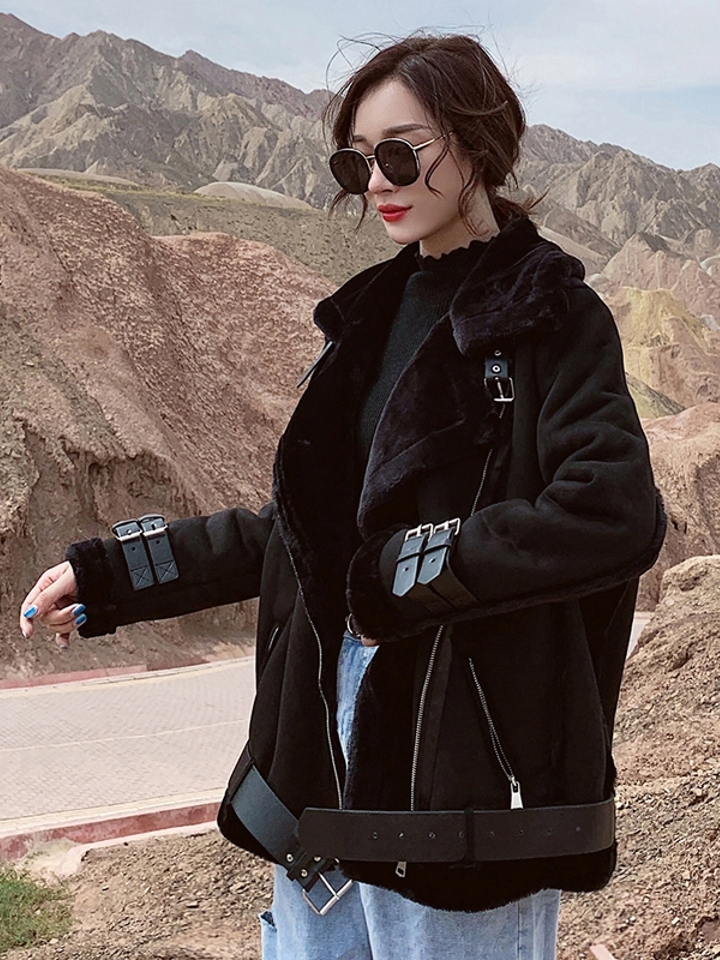 麂皮绒的面料,手感和保暖度都是一级棒,廓形垂感上给你大牌的体验,全身羊羔毛的锁边和装饰,让版型更加立体,温暖触手可及。