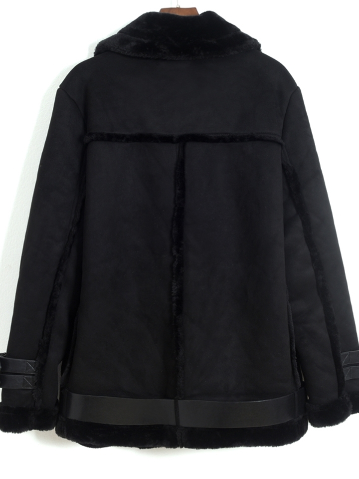 表层鹿皮绒质感柔软舒适,保暖性好,时尚的翻领设计,衬托女性的颈部优雅线条;精致的斜插口袋,隐藏的低调奢华,尽显婉约气质。