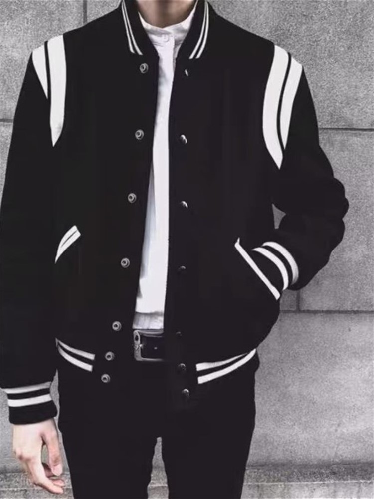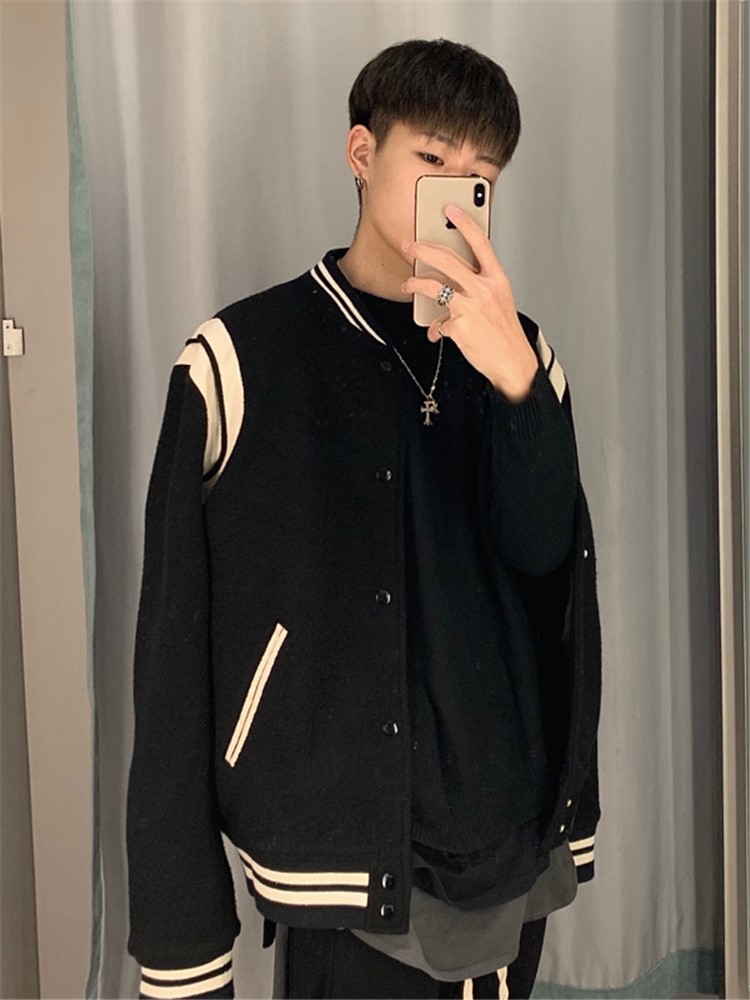 夹克采用了经典的棒球领设计,穿着舒适有型,同时也能凸显出男士的帅气与干练,胸前的字母印花,彰显了时尚的潮流感,整体风格时尚大气。