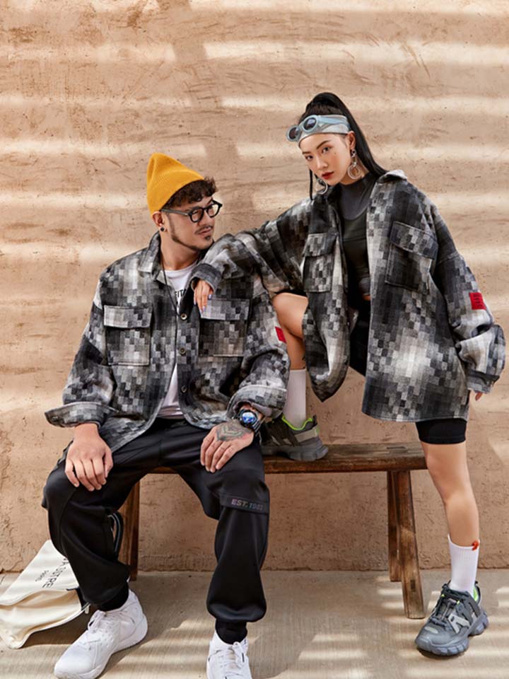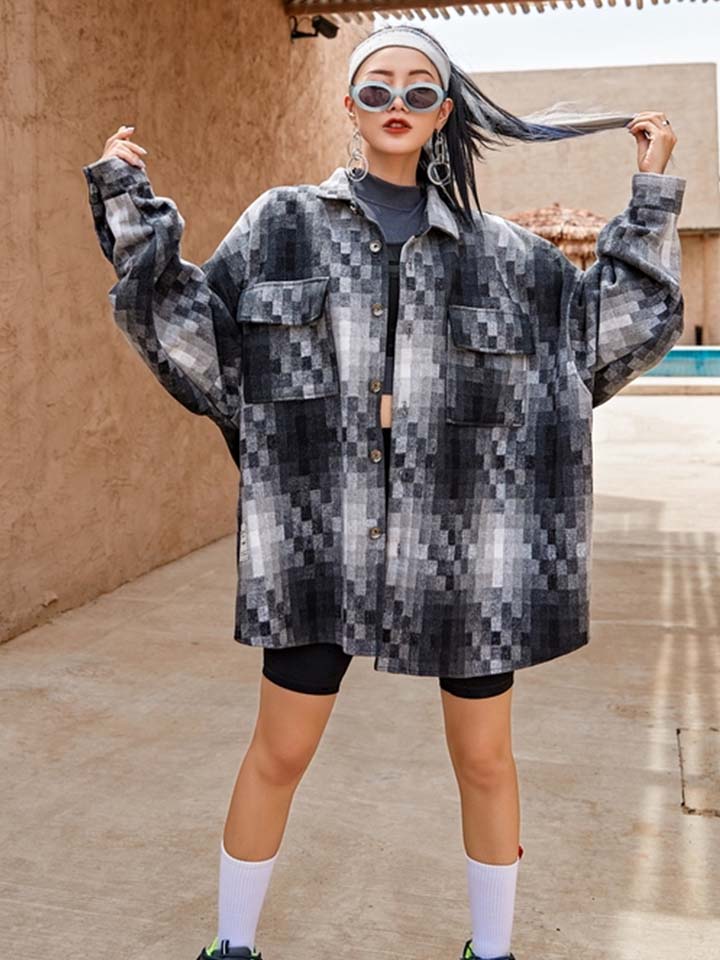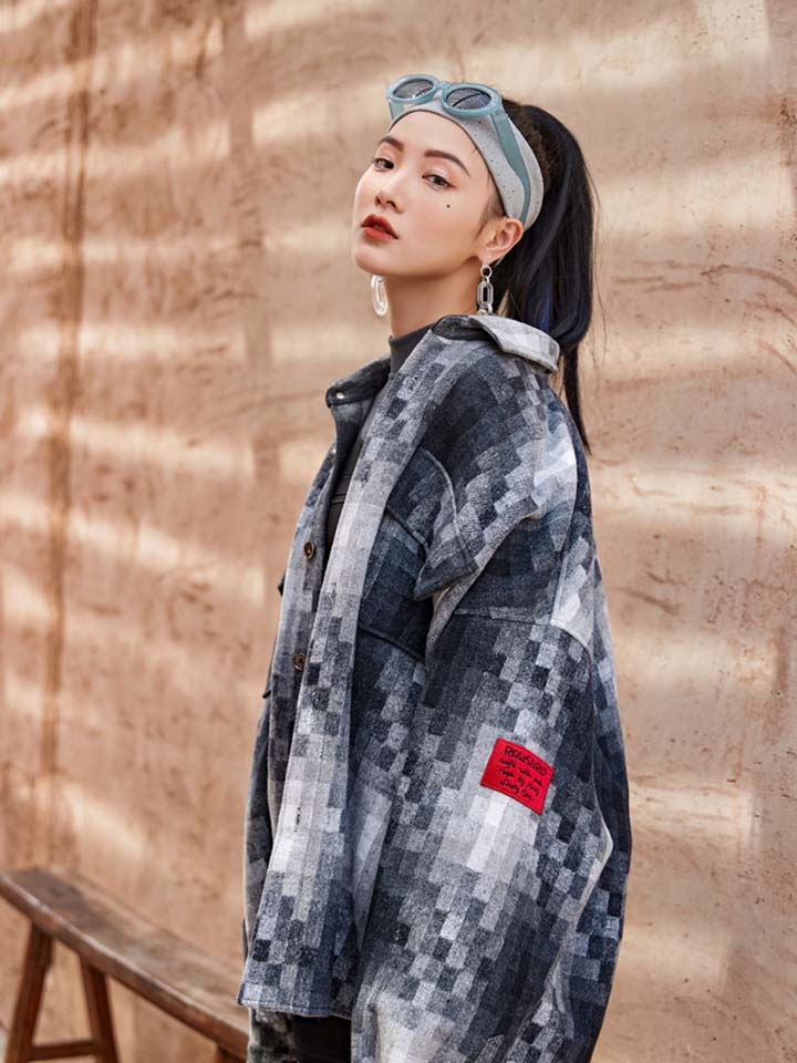 这款魅力十足的渐变色马赛克外套,精致的翻领设计,穿上很有精神哦。格子纹理,更显着一丝文艺时髦风。宽松的版型,视觉上干练又很有型。