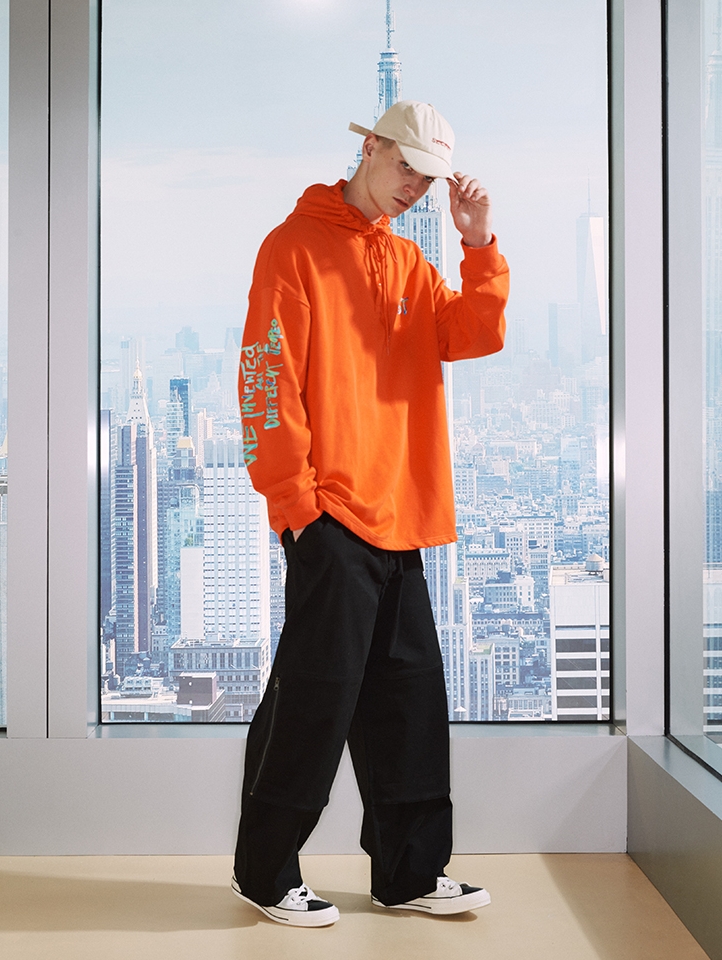 采用了极具美式风格的款式设定,裁剪宽松,胸口处以极具美式设计感的字母印花进行点缀,配合当下炙手可热的橙色主色调,尽显十足街头风。
