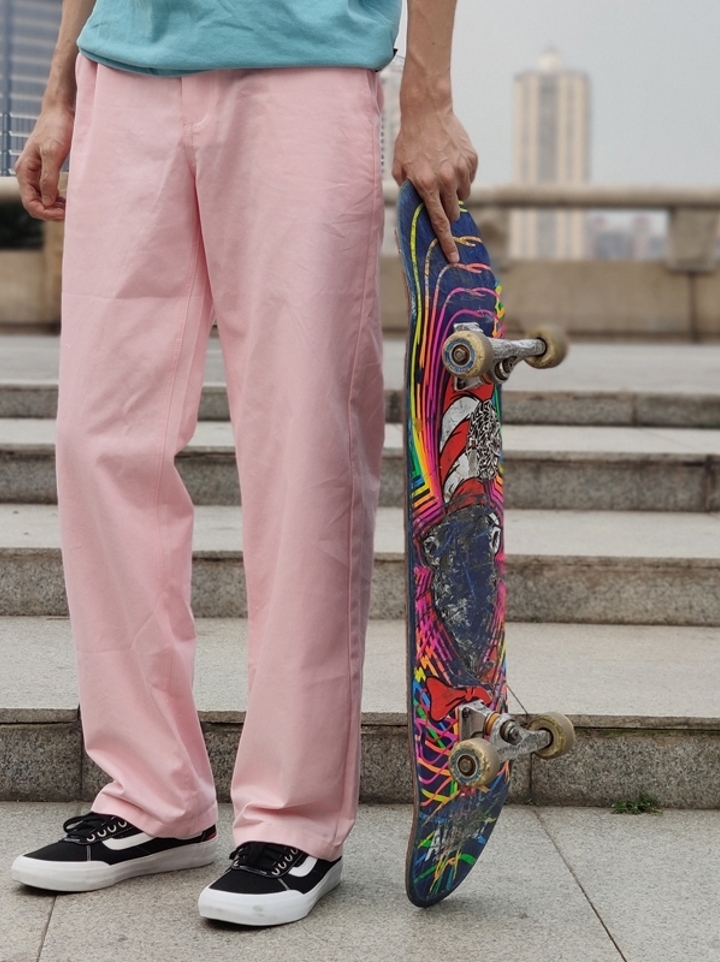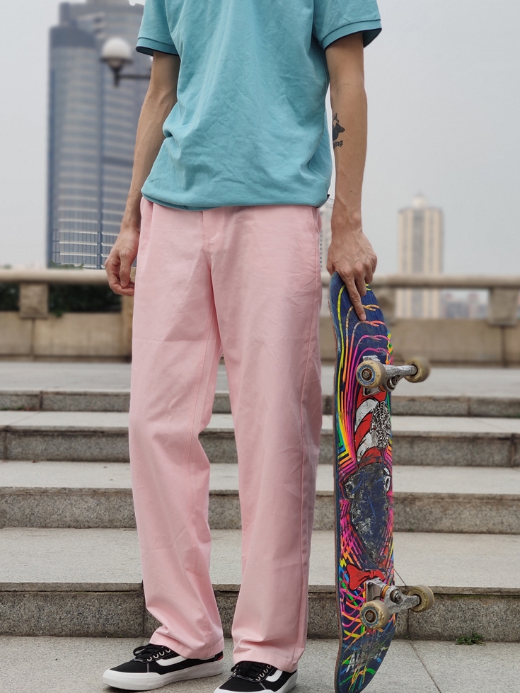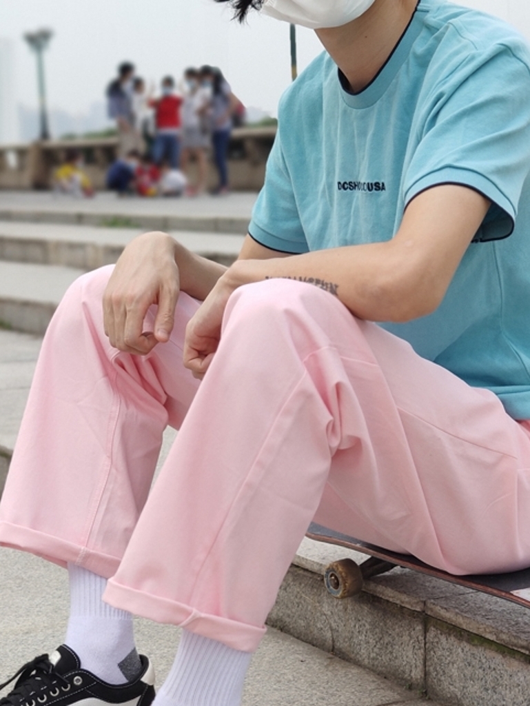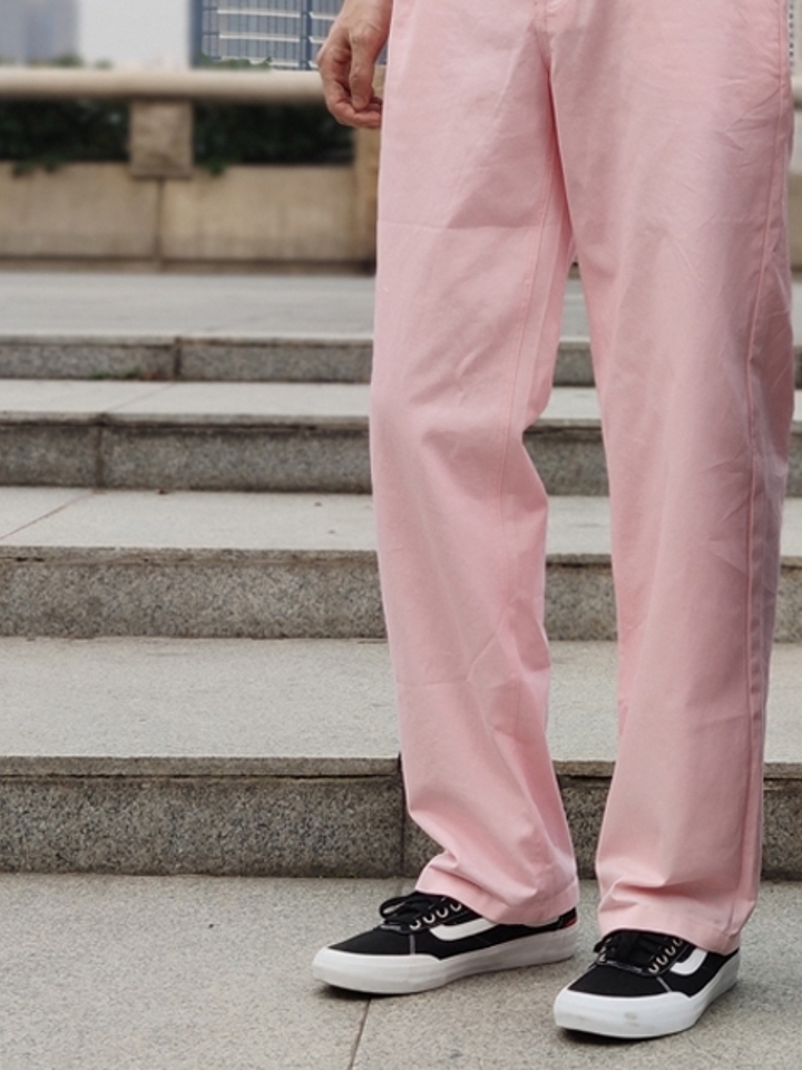 这款休闲时尚风的工装裤,粉色系的裤身显青春减龄,适合休闲穿搭。