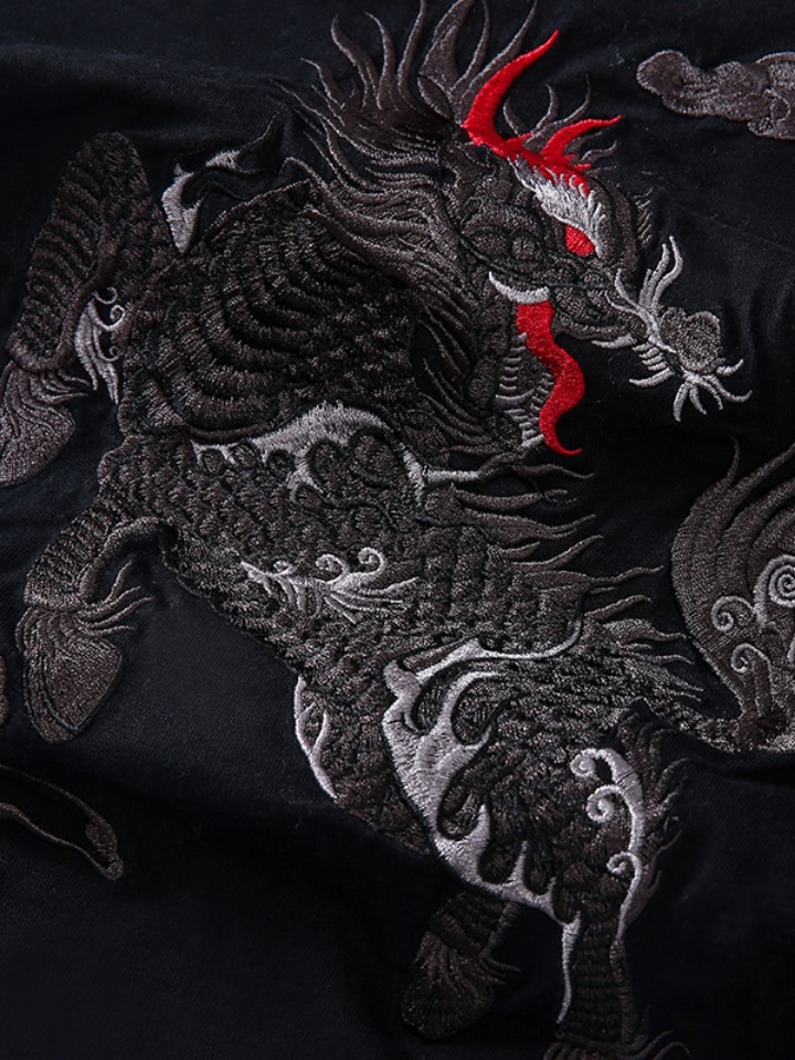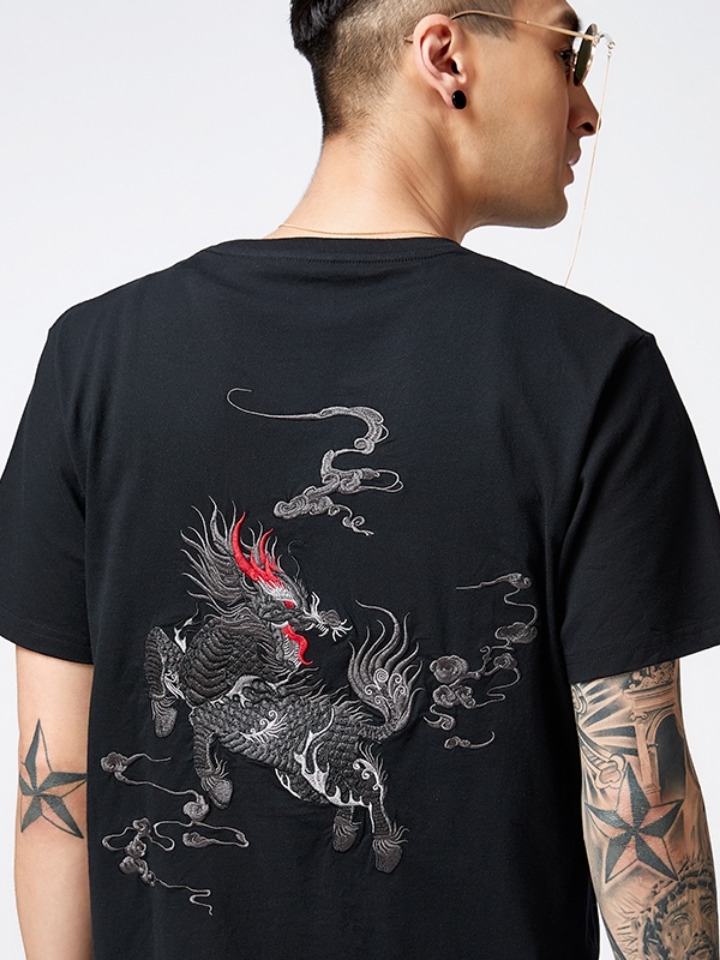 来自时尚潮牌街派一族,以中国风为设计灵感,略带中式的风格图案,图案是麒麟刺绣,设计新颖独特,带着浓浓的中国风气息。