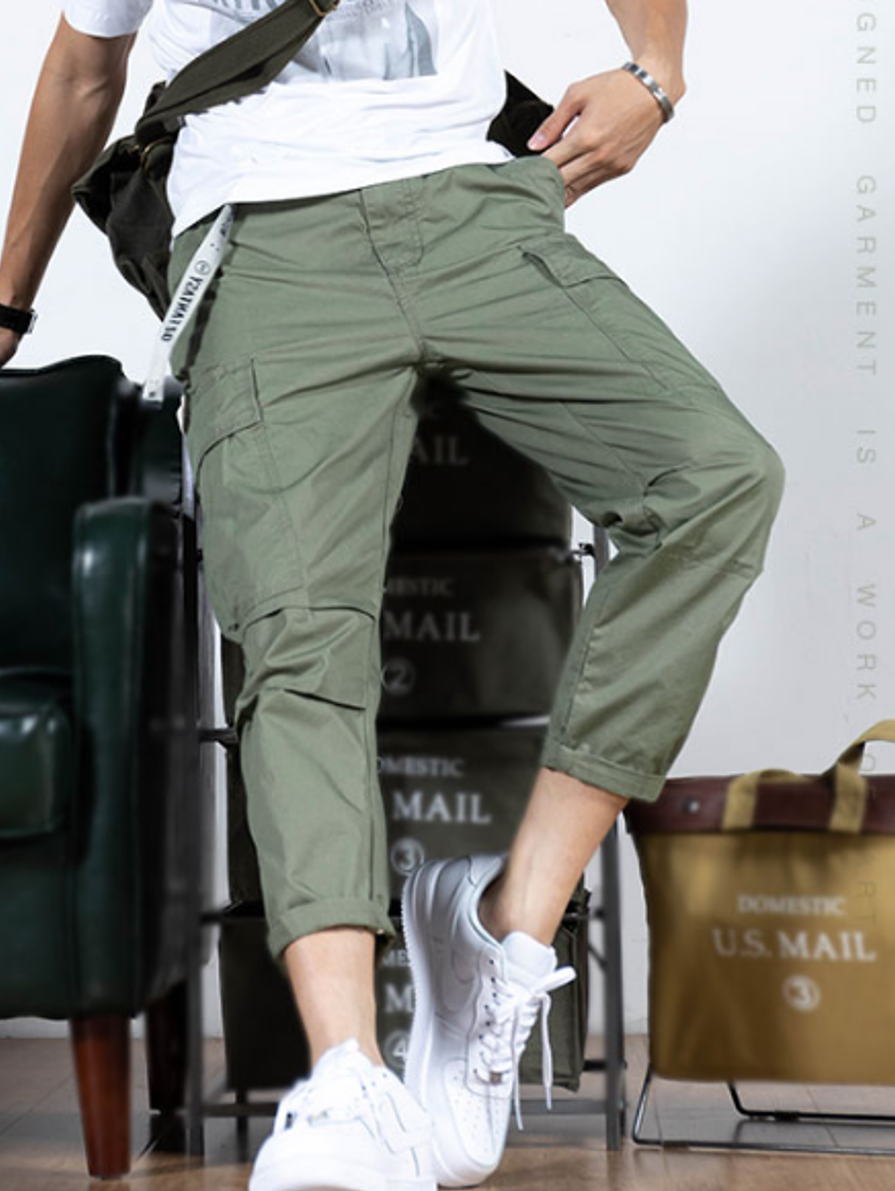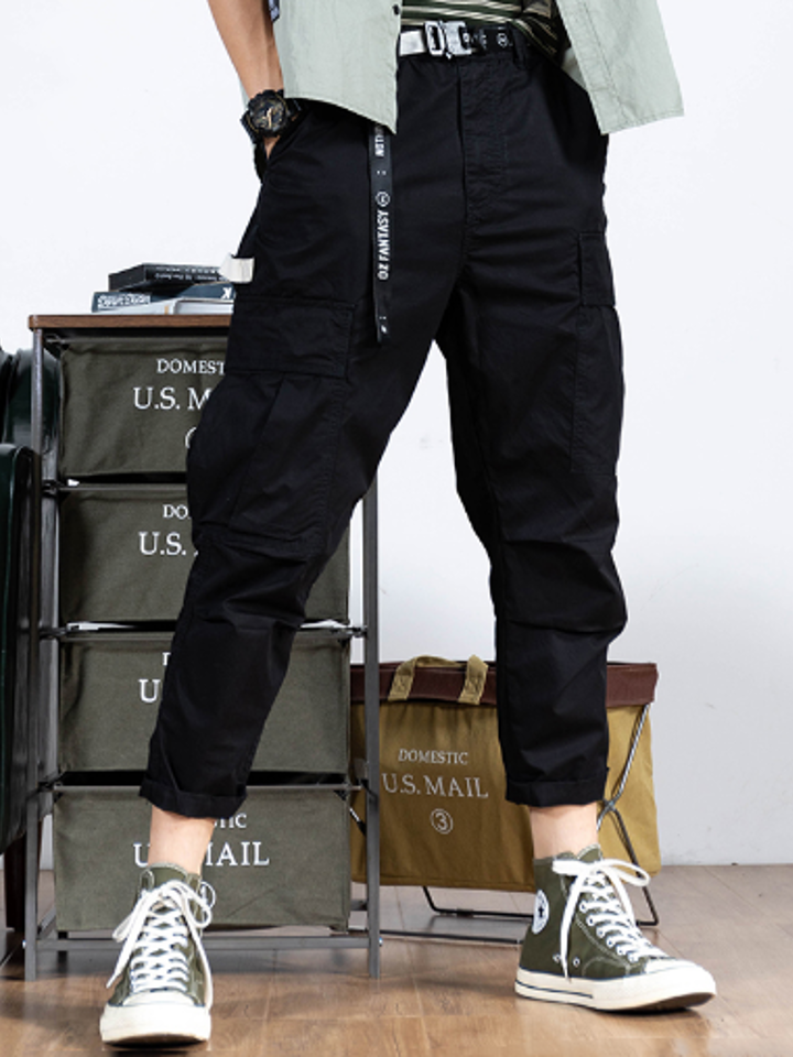 霸气的工装裤款式,十分时尚,展现出青春活泼的独特魅力。多个大口袋设计,美观实用的同时,洋溢着青春活力气息。