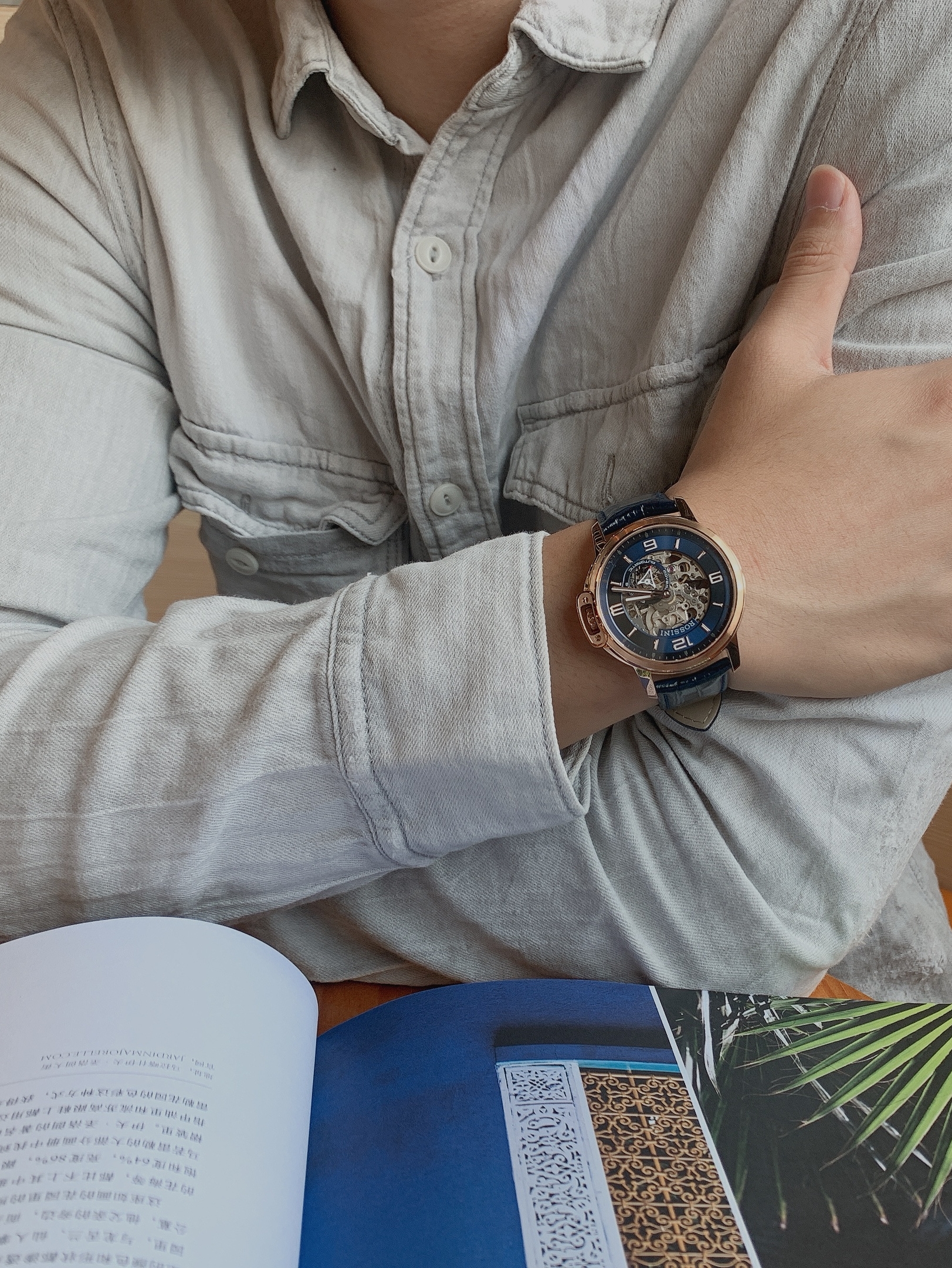 采用勋章系列的表壳,独属精英男士,更加彰显男性魅力气质;表壳双面双镂空设计,增强三维立体视觉体验;有着21颗宝石轴承,同时有着36小时的运作,精准时间,有效读时;后盖采用虎鲸图腾,寓意着自由、自信、勇敢,展现男性果敢真实、勇猛的性格,用于担当的精神;在黑夜里也能够清晰读时,无惧黑夜。