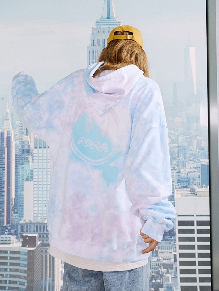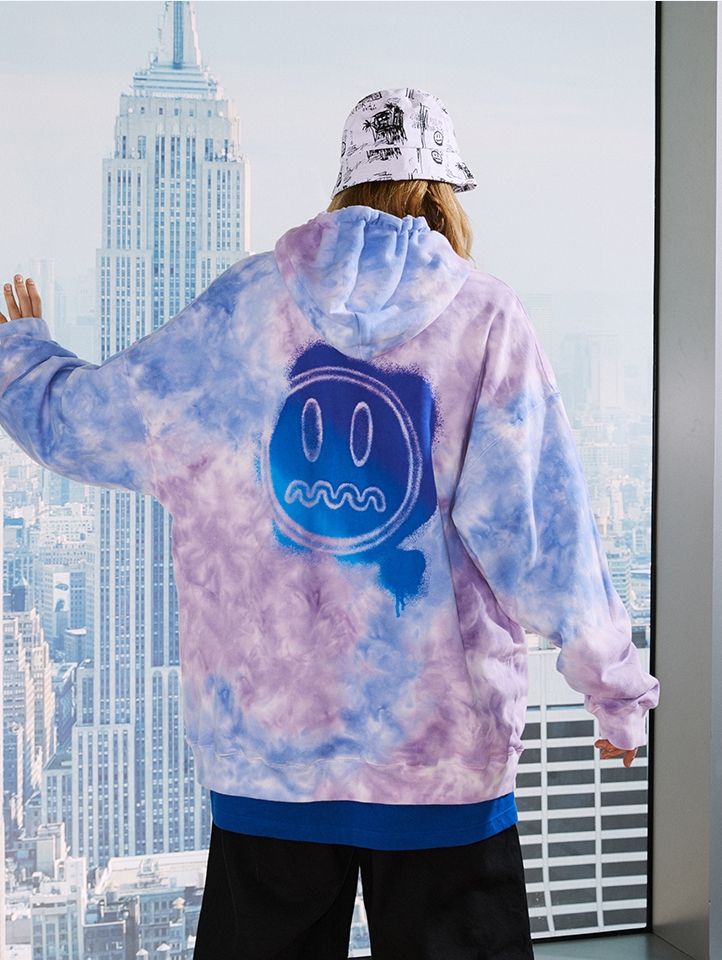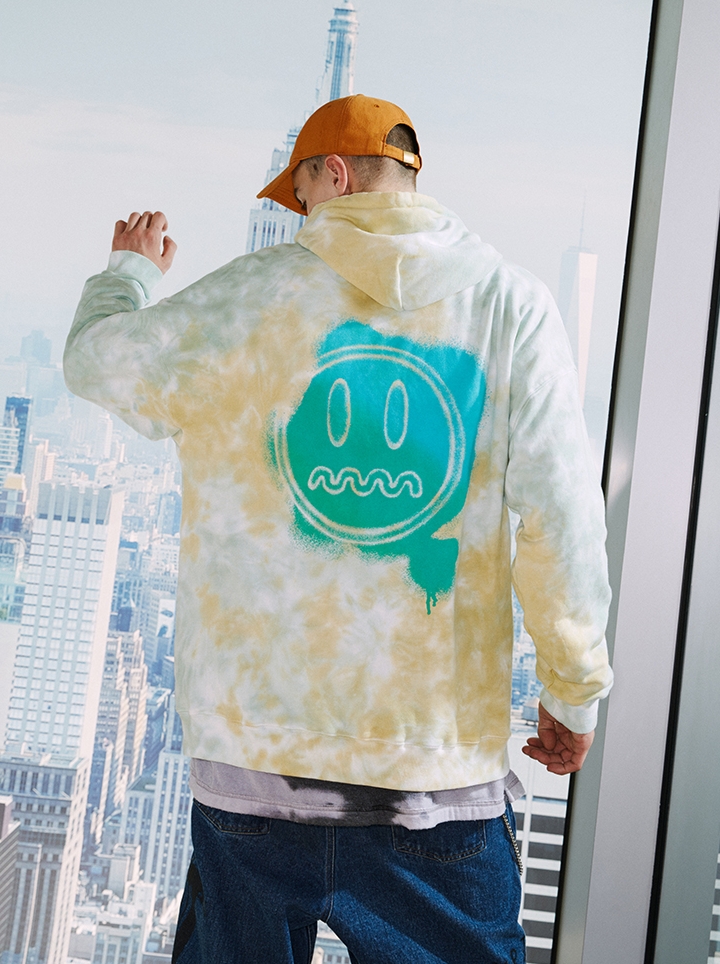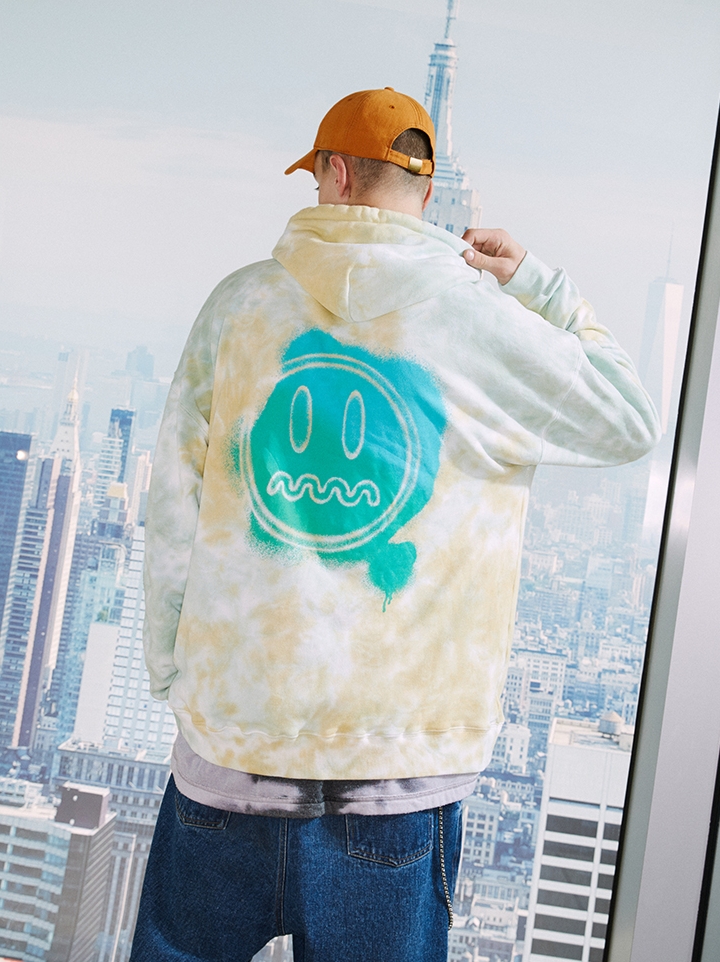 衣身炫酷的扎染印花,既能体现街头气息,又传递着穿着者的热情。选用厚实的面料,早春穿着温暖舒适。领口和下摆都采用了罗纹设计,久穿不易变形。