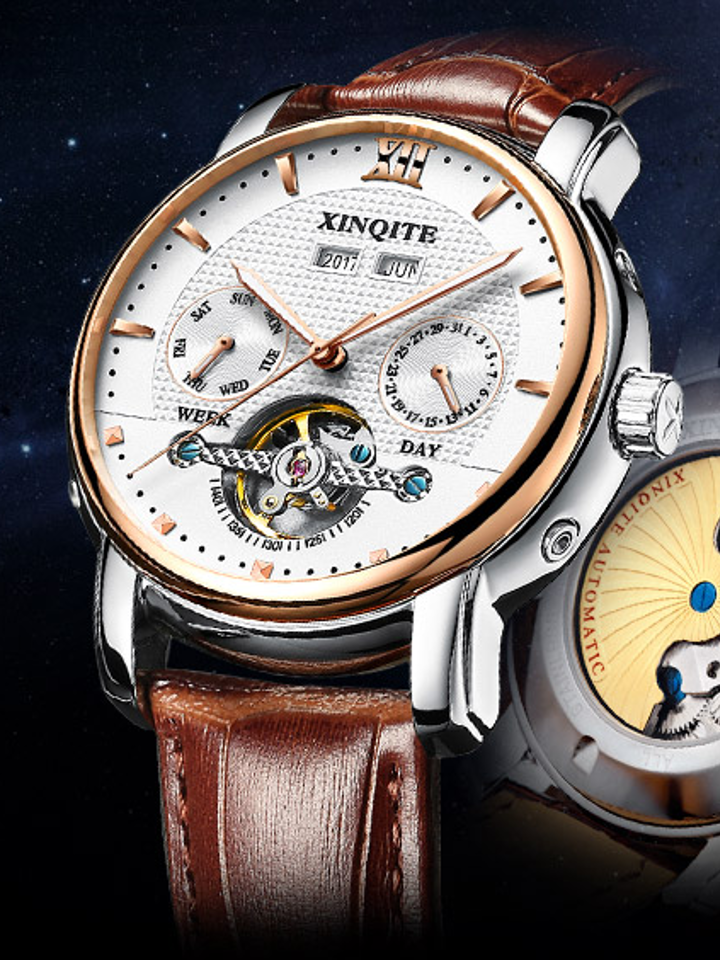 这款全自动机械表,走时更加的精准,简练的设计,更加贴近商务精英的形象,而清新的配色,自然也不失休闲质感,表镜的独特弧形设计。