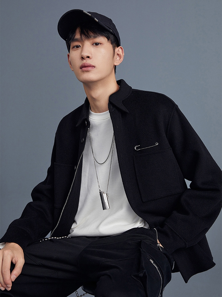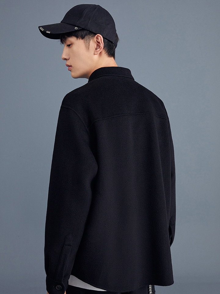 通体纯黑的夹克衫在换季时节是非常百搭的且实用的,搭配浅色T恤和同色系下装,就能轻松打造出非常休闲惬意的风格;双面呢的面料搭配西装裤也会显得特别和谐,不会有突兀感,作为内衬搭配棉袄或大衣也会非常好看哦!
