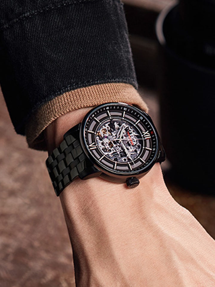 该款手表以精钢材料作为表壳,搭载 人工合成蓝宝石表镜材质,使其具备良好的防水、防摔性能,稳定耐用;内置进口机械机芯,运转流畅不卡顿。