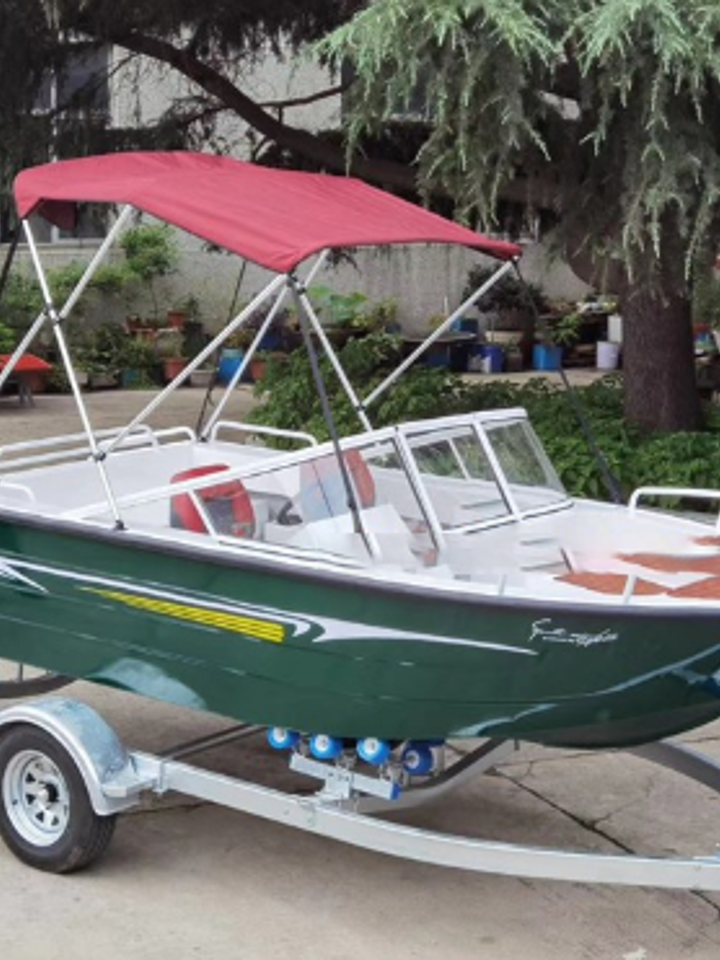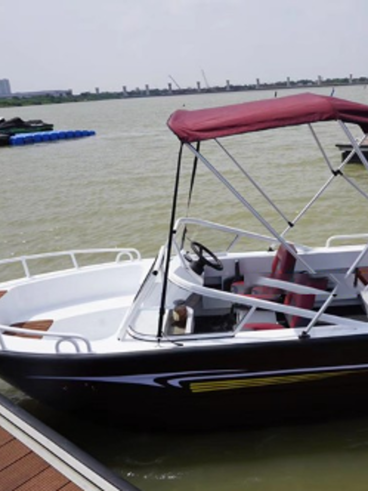 这款全棚艇前面拥有可开合式窗户设计,可随时开合通风,休闲艇内部空间大,可容纳4-5个人,设备十分齐全。