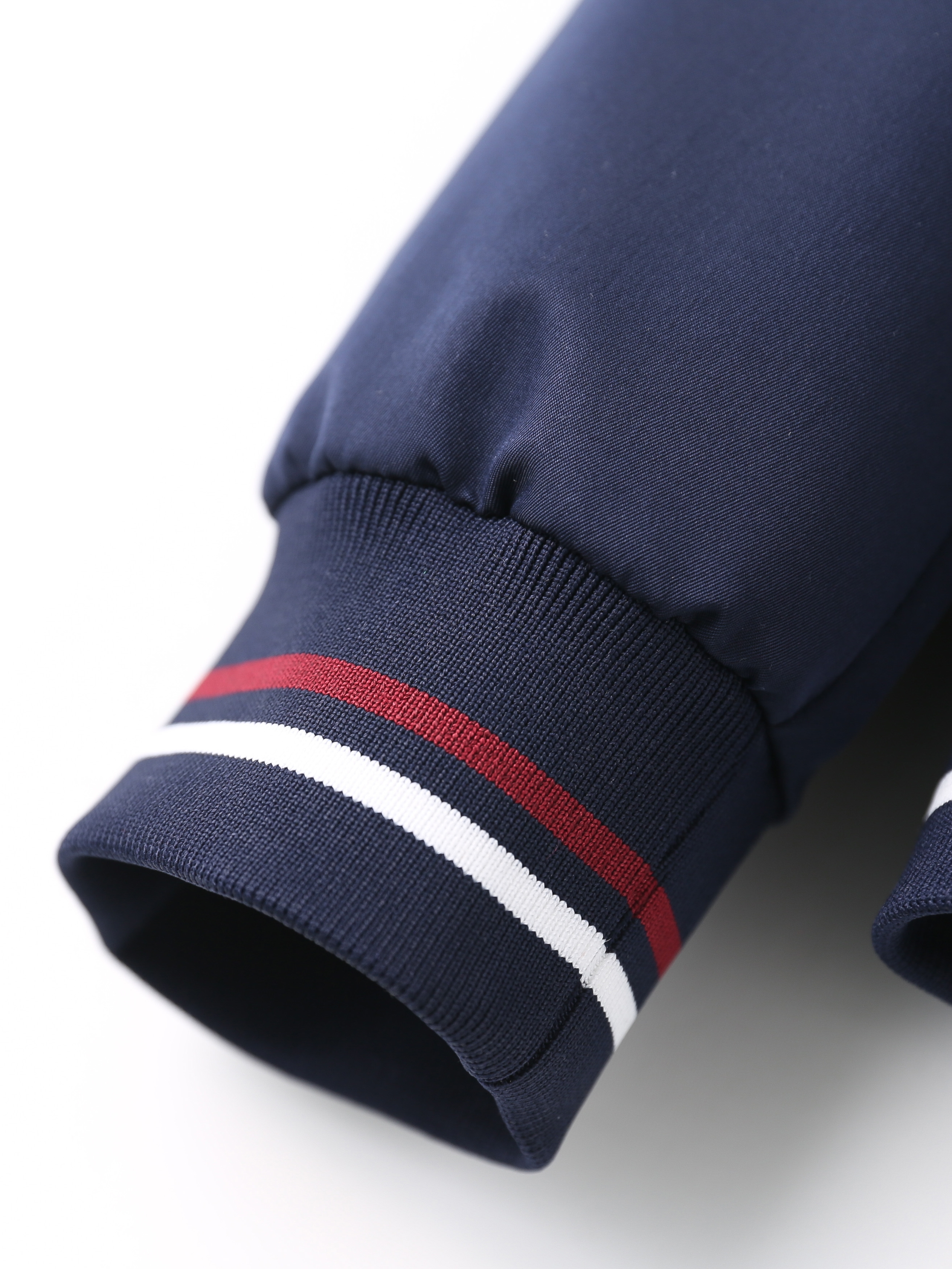 肩处撞色条纹的点缀,打破原本的单调,为整体带来更多的吸睛力,袖口处收紧的造型,紧贴手腕肌肤,能够起到更好的防风作用。