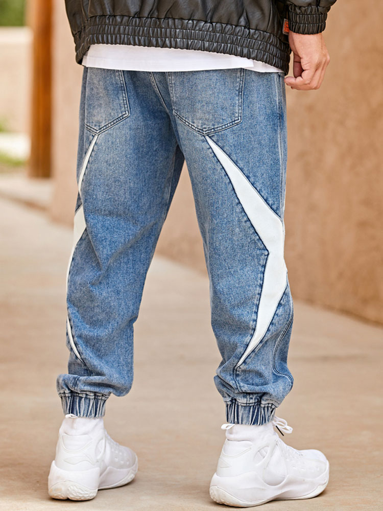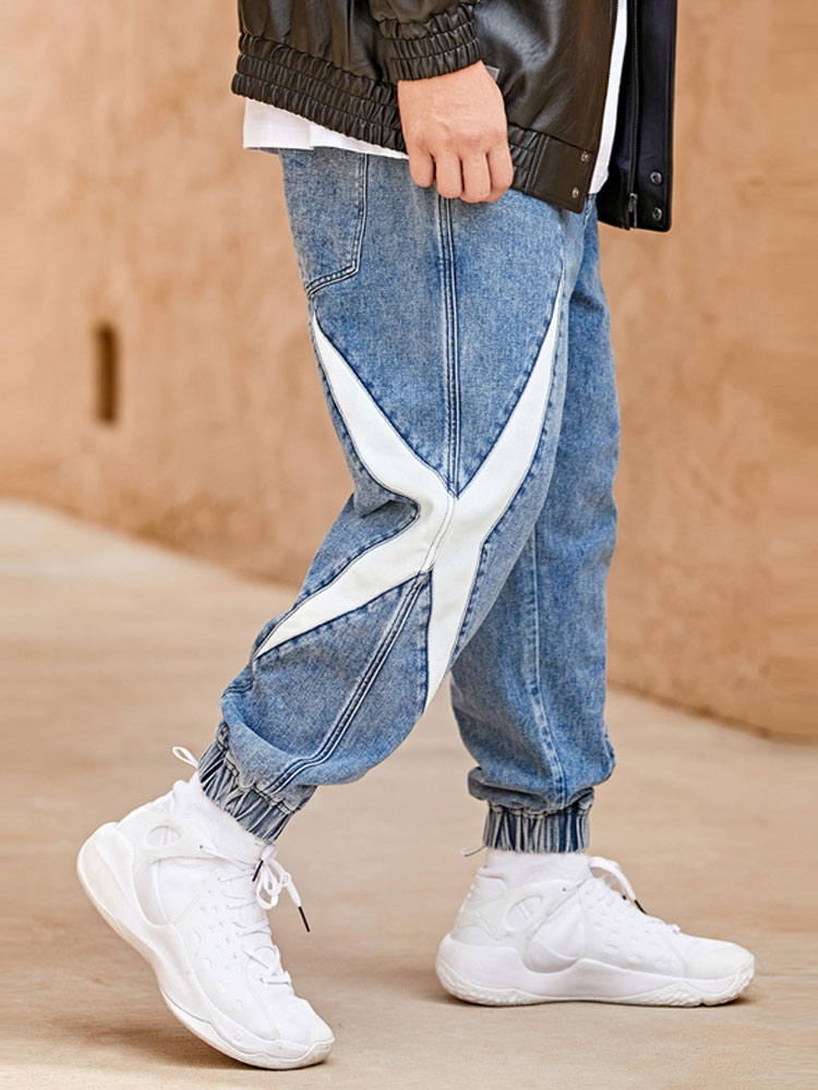 清新的蓝色,既不会紧绷也不会很邋遢,搭配一双简约运动鞋,炫酷T恤,适合街舞者穿着。