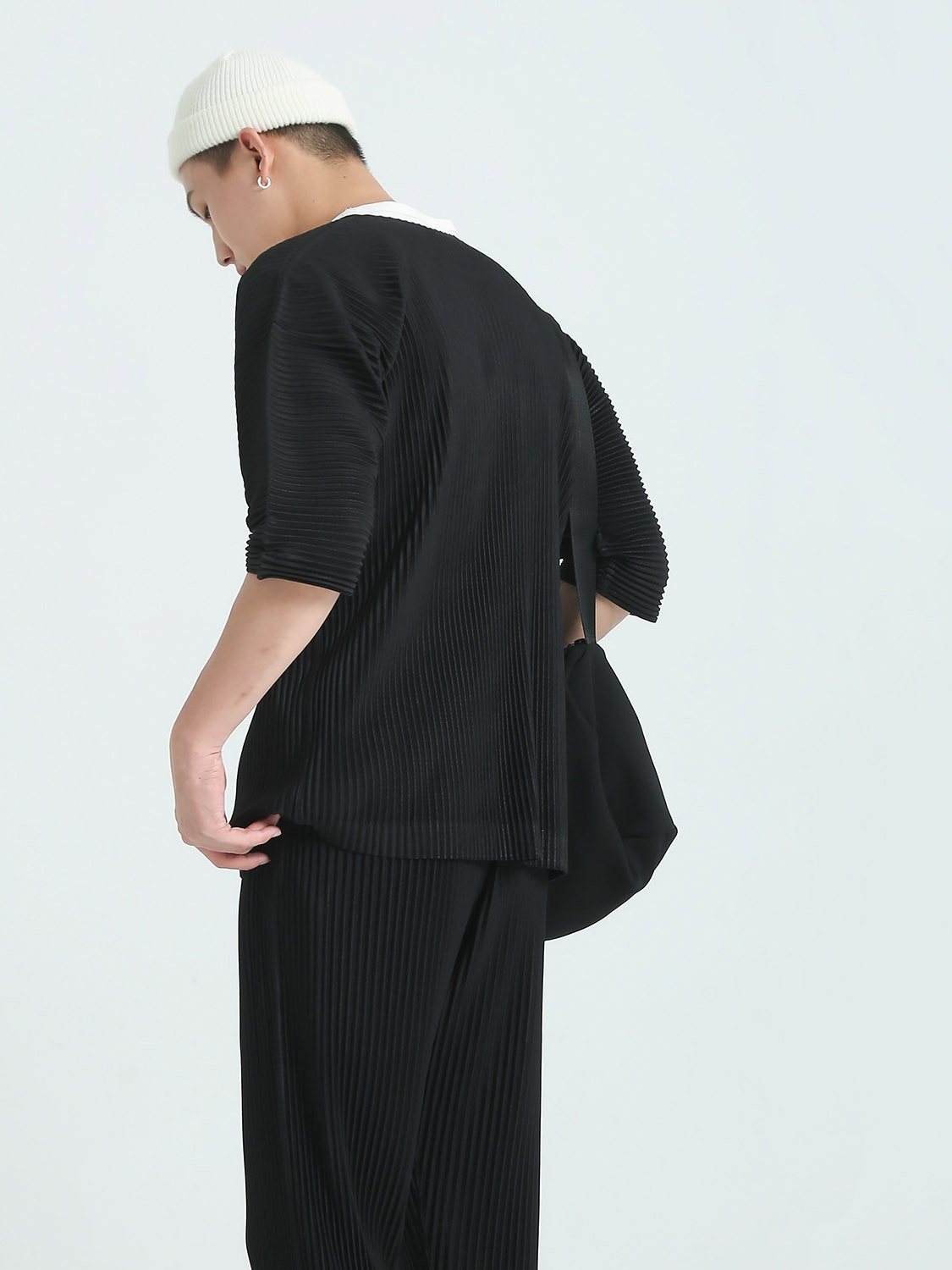 简约的高腰设计,搭配上修身的版型,上身显瘦又显高。
