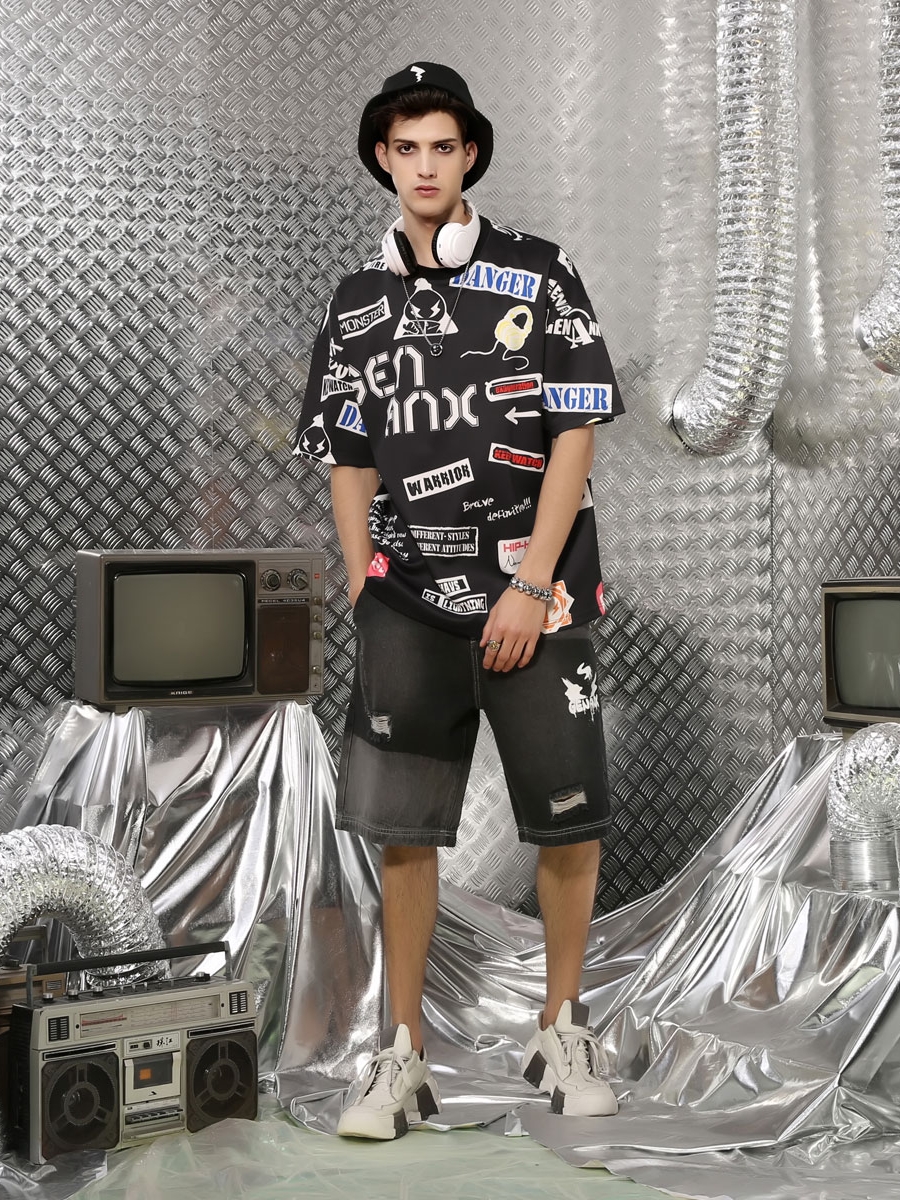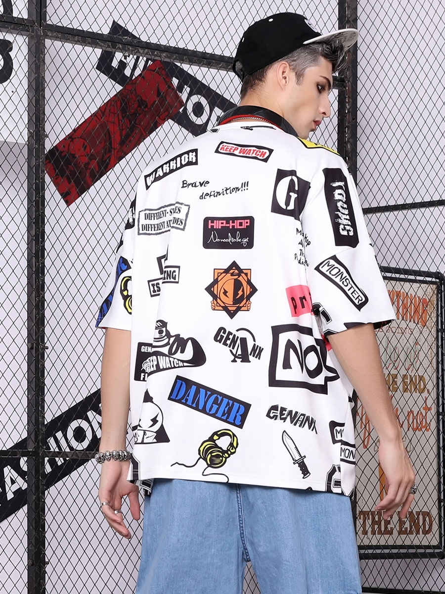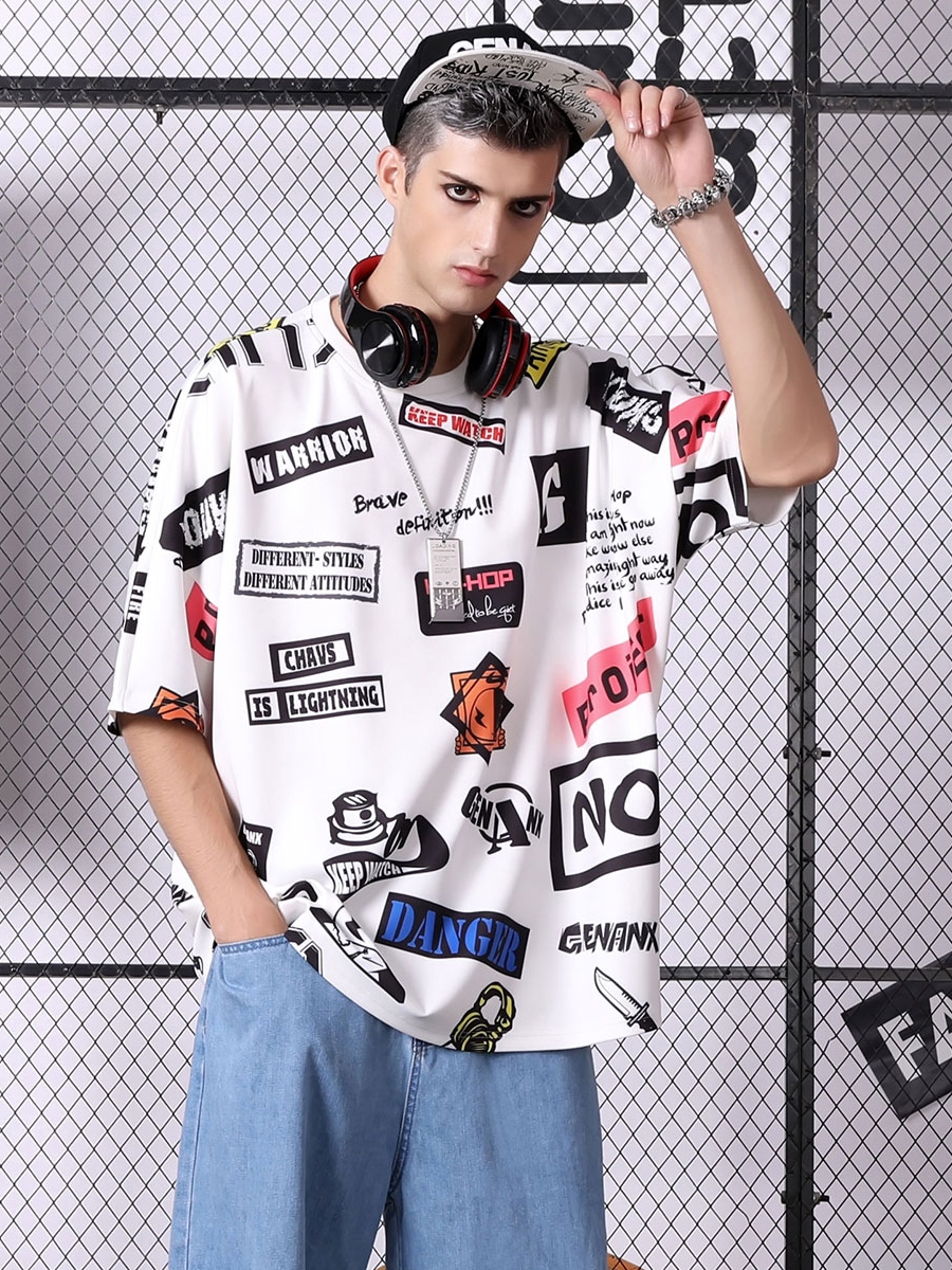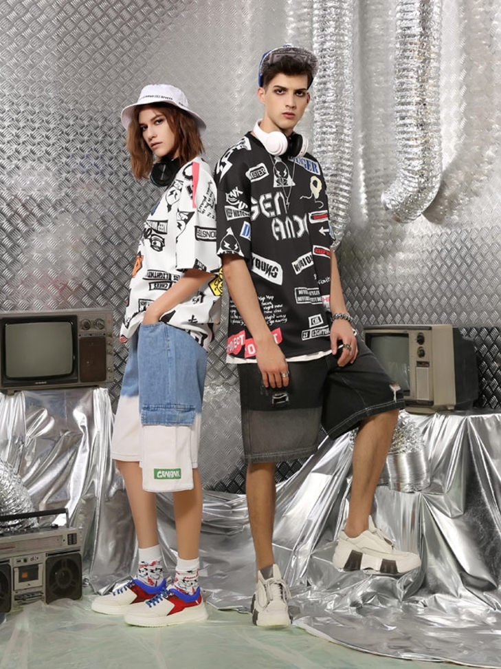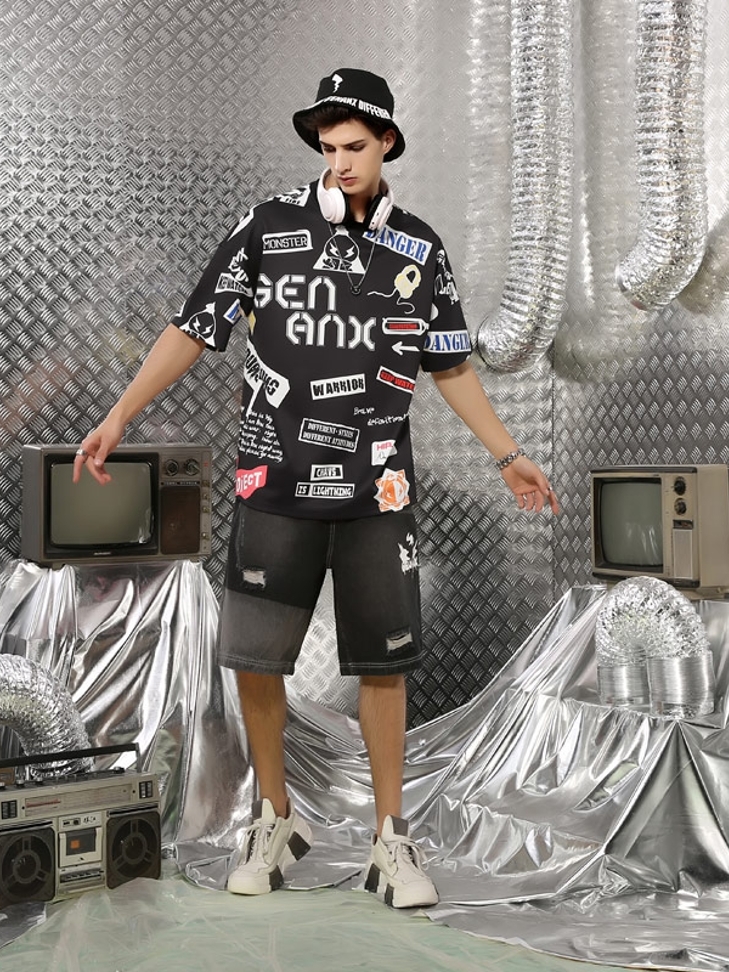 保持态度用力发光,无需顾及他人的眼光。本款T恤将图标、英文等图案汇聚一身,争奇斗艳,不抢眼不罢休。宽松版型,穿上嘻哈有范。太空棉面料,触感好,挺括有型。穿上帅气,出街赚取一波艳羡的目光和回头率。