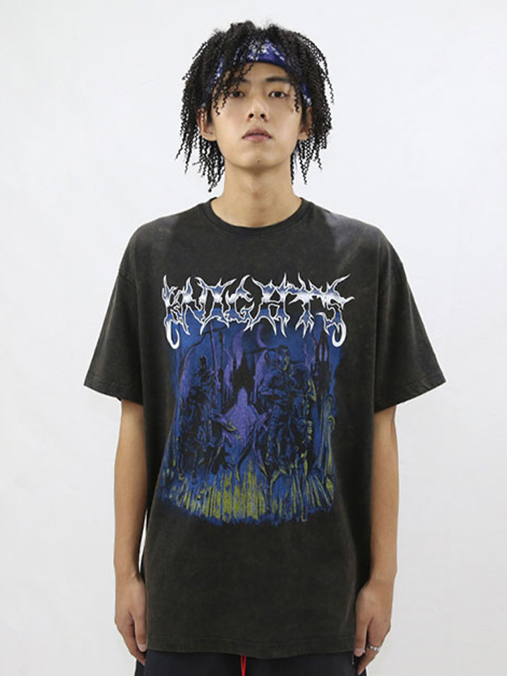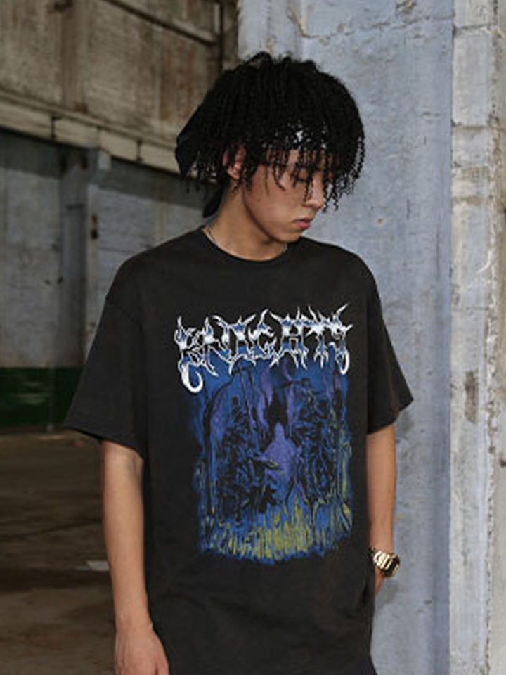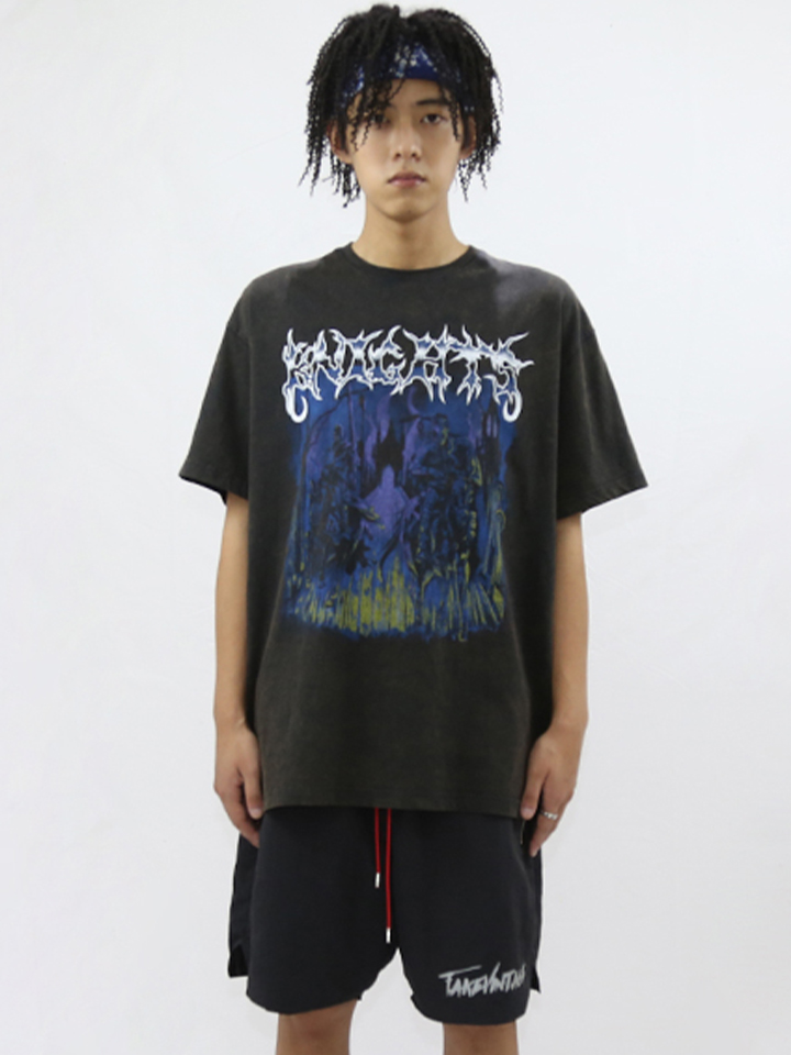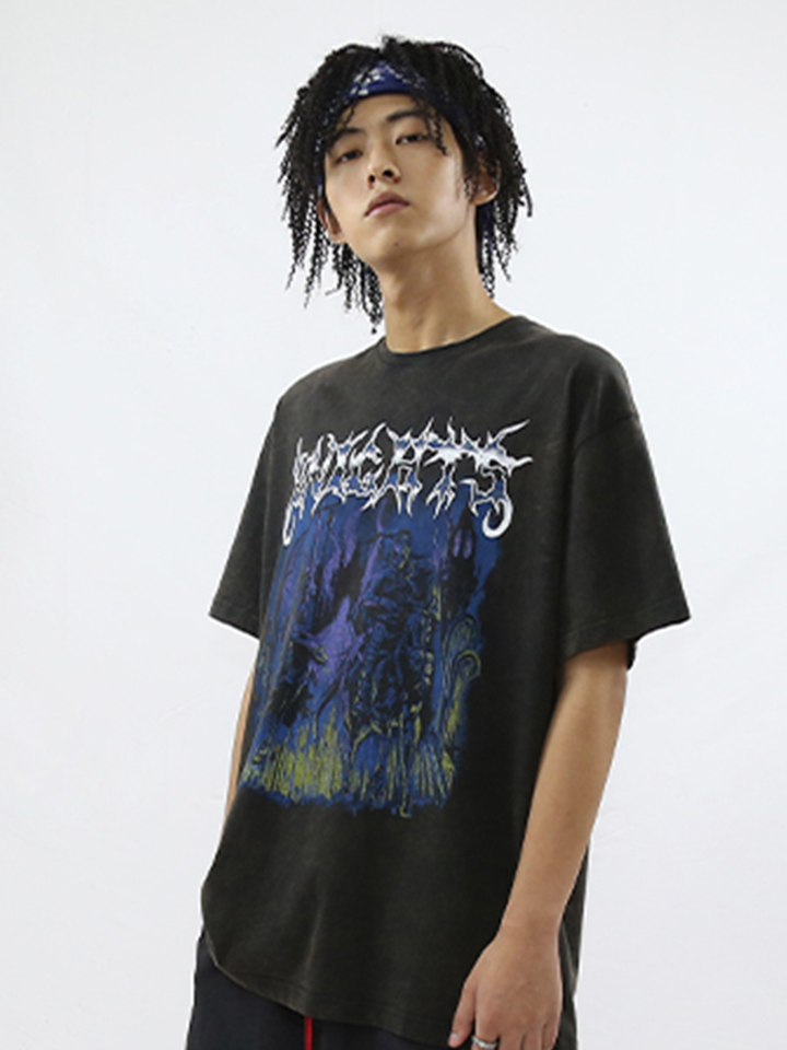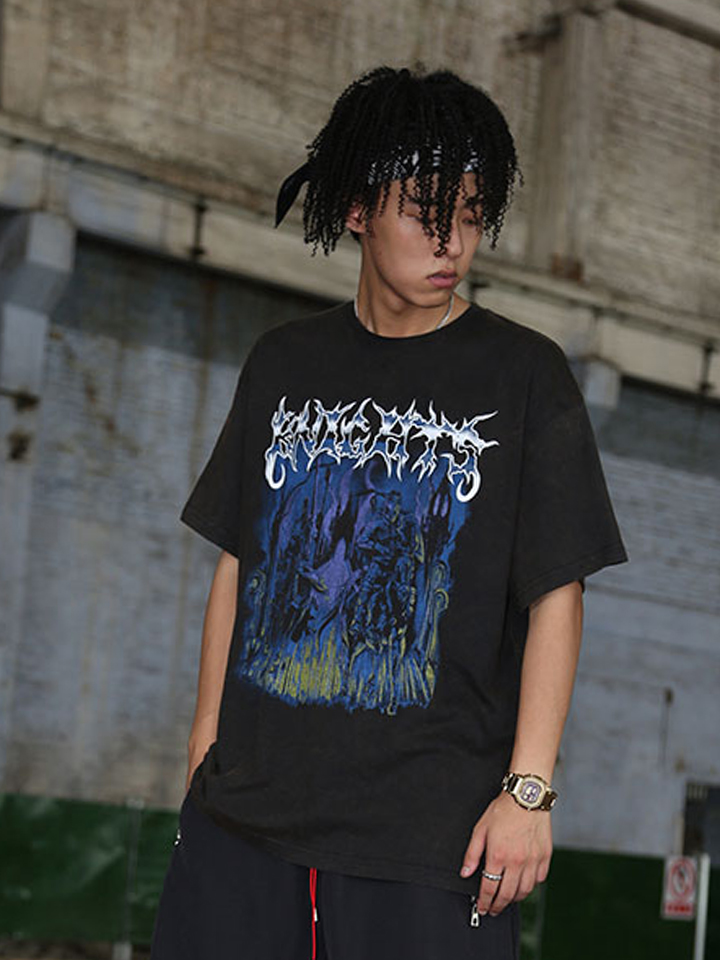 这件T恤的风格是比较潮流复古的感觉,上身很帅气。