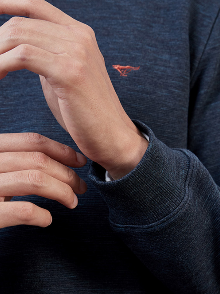 宽松圆领的设计版型,对于身型有着极佳的修饰效果,而罗纹的处理,更是有着耐穿不易变形的效果。品牌logo的刺绣,彰显出大牌质感。