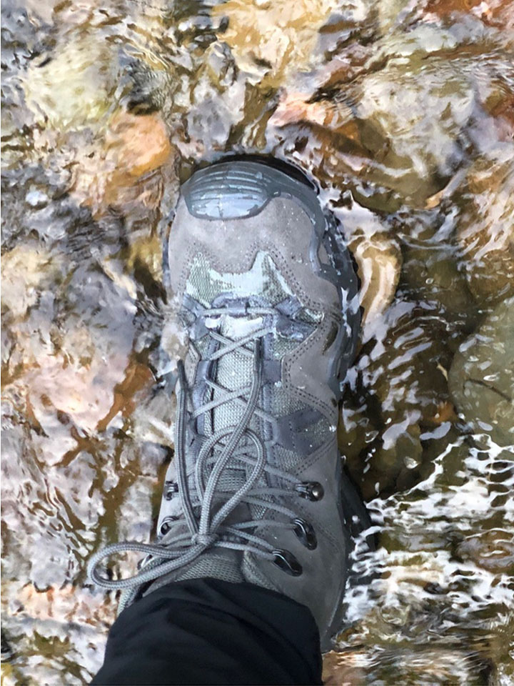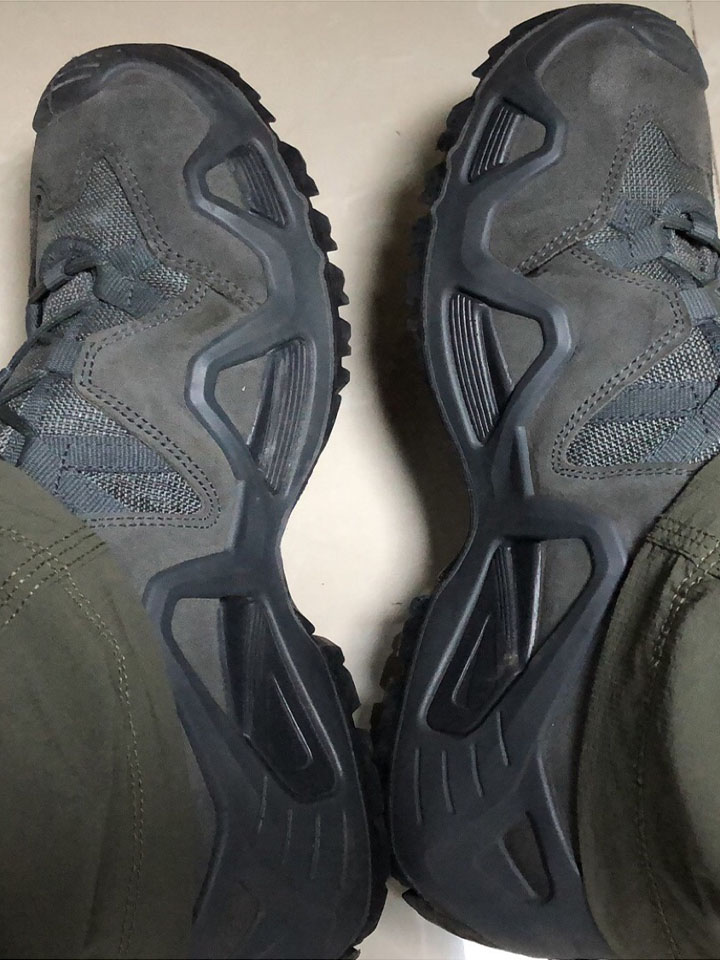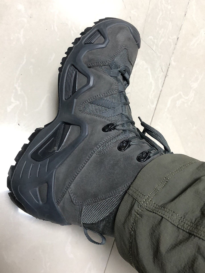 这款战术军靴具有良好的防水性能,无惧任何的恶劣环境。圆头的鞋头设计,有效保护脚趾防止受伤,无论任何场合穿上,都彰显了军人的正义精神。