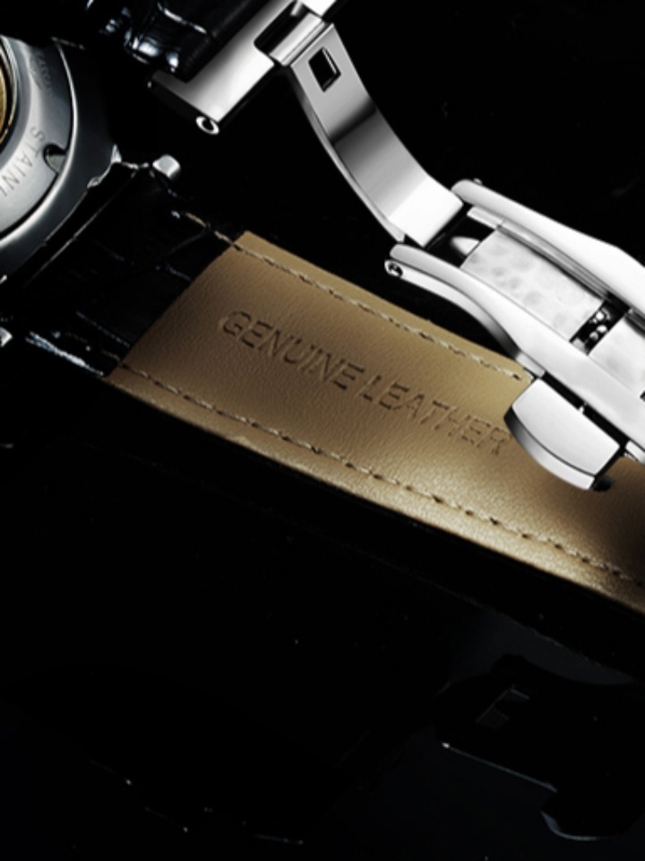 菱格立体纹理表盘,油压机冲印而成,纹路清晰,立体感强烈,搭配经典的柳叶指针和立体罗马刻度,日历小窗口点缀,时尚大气。