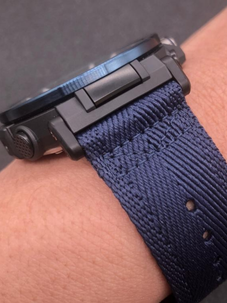 卡西欧光能电波男表,天际蓝的表环搭配钛合金表带、蓝宝石玻璃镜面等坚硬配备,外观与坚韧兼具,系列配备第三代三大感应器