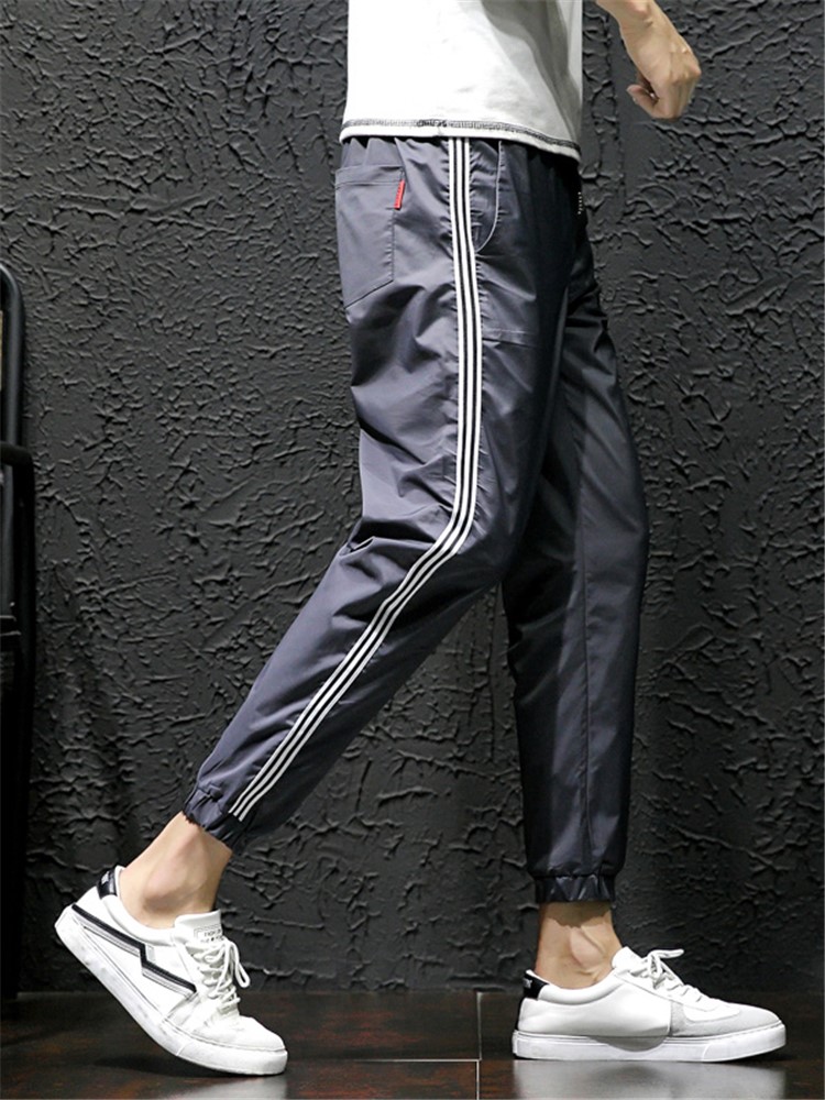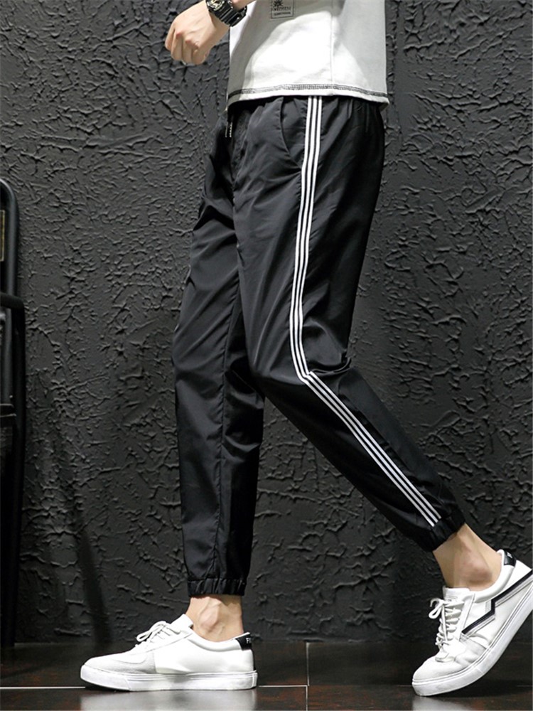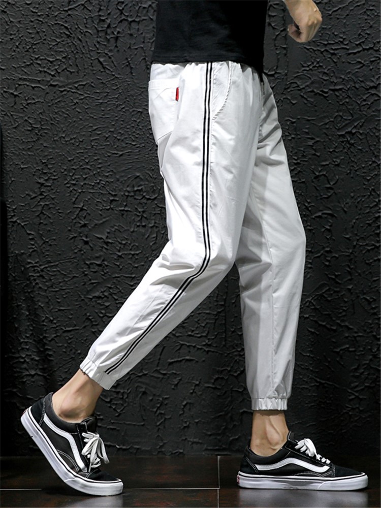 裤子优质的面料,结实耐用,穿起来又潮又凉快,一穿就显大长腿,显瘦,显高,让你独具风采,时尚更有型。一条束脚裤,扫平潮男进阶路,九分裤长,露出纤细脚踝。