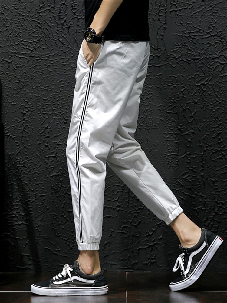 一条束脚裤,扫平潮男进阶路,九分裤长,露出纤细脚踝。