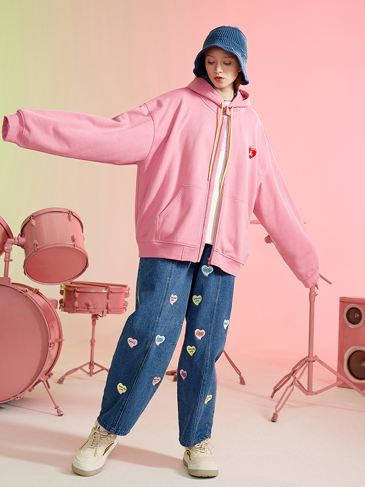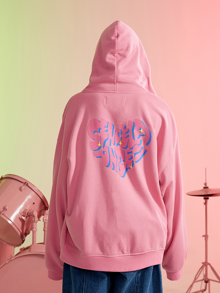 很休闲的连帽卫衣,充满青春活力,衣前的印花图案,展现着玩味感,还有减龄的效果。