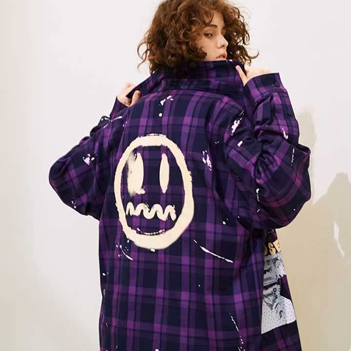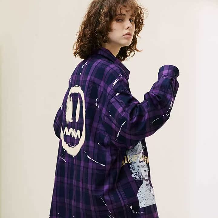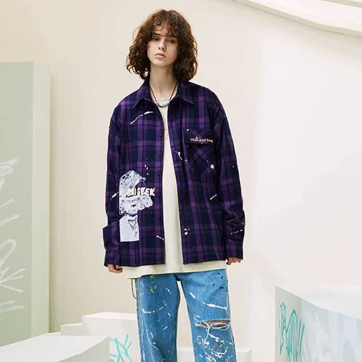 紫色的格纹设计,结合泼墨的装点,整体充满了艺术气息。