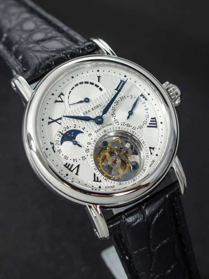 Seagull海鸥表,是创始于1955年的中国经典腕表品牌。这款陀飞轮系列的男士手表,采用了偏心陀飞轮机芯,走时稳定误差低,外壳的设计凸显硬朗的男士气概,煅烧蓝指针,简约低调不失时尚美感。