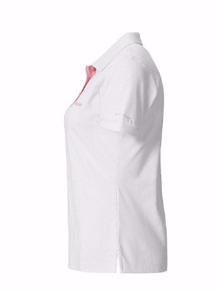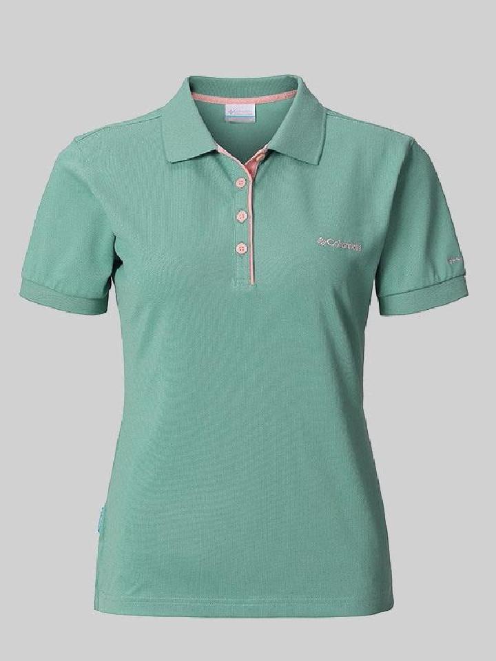 三粒扣可调节领口,宽松舒适,经典刺绣哥伦比亚标志,衫脚哥伦比亚标志,衫脚开口设计,宽松下摆休闲舒适。