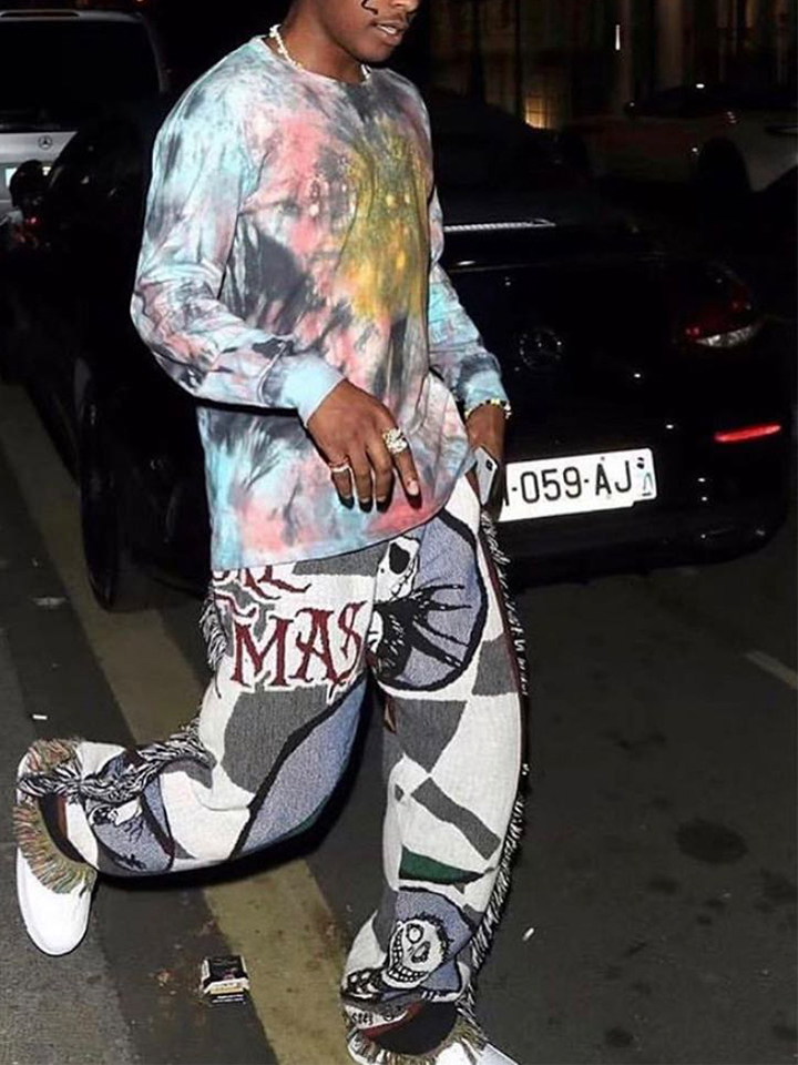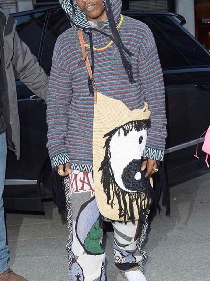 一款个性十足的带有美式图案设计的流苏针织裤,搭配新颖又潮流。