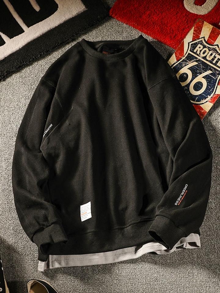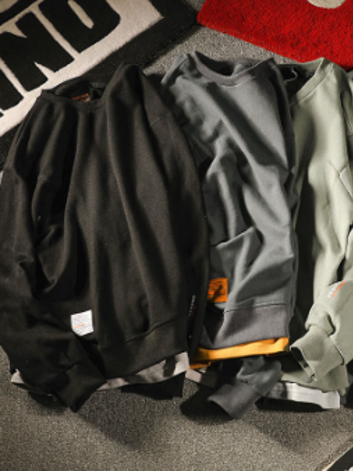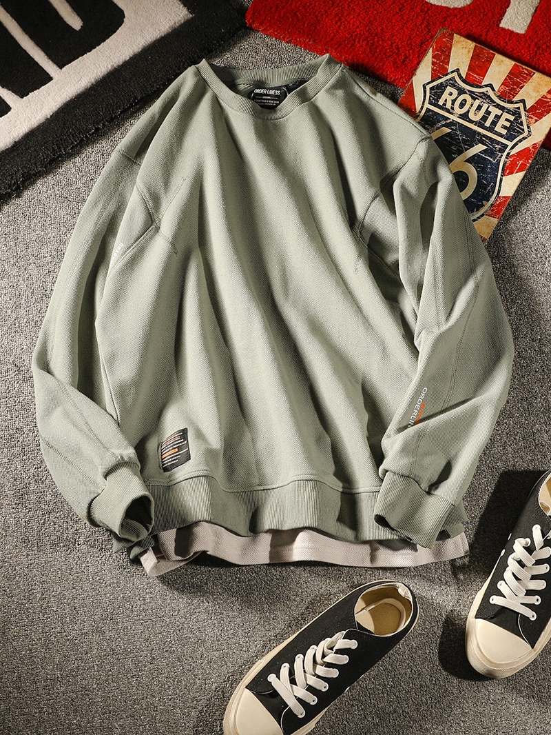 撞色拼接的假两件设计是本款衣服的最大亮点,凸显时尚潮流;优质的面料通过磨毛工艺,柔软丰盈,不易掉色,给你舒适保暖的穿着感受;纯纯的富有怀旧味道的色调,诠释了日系复古的时尚风格;
