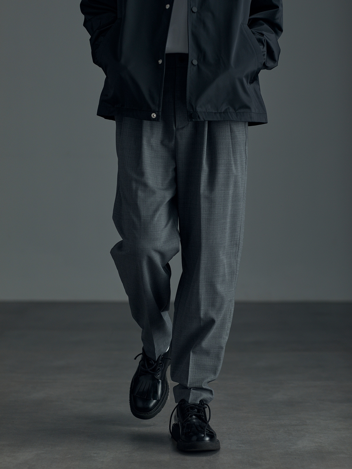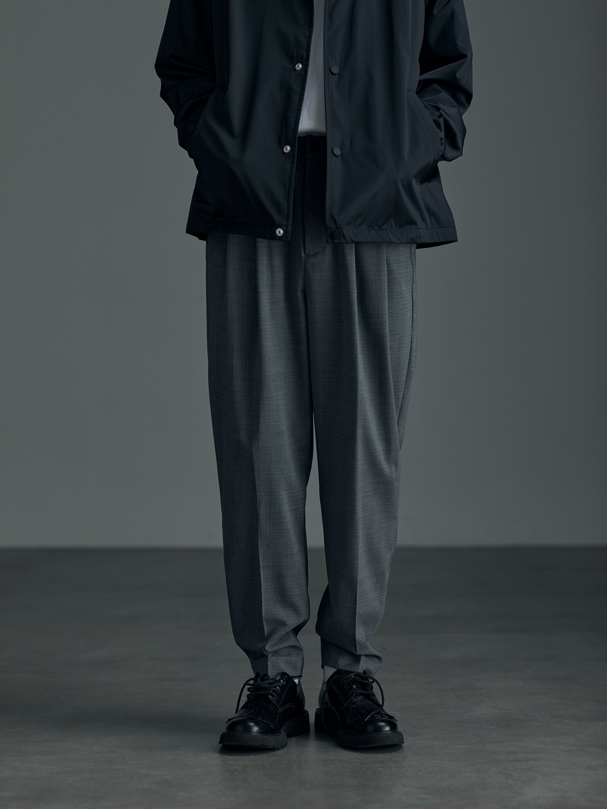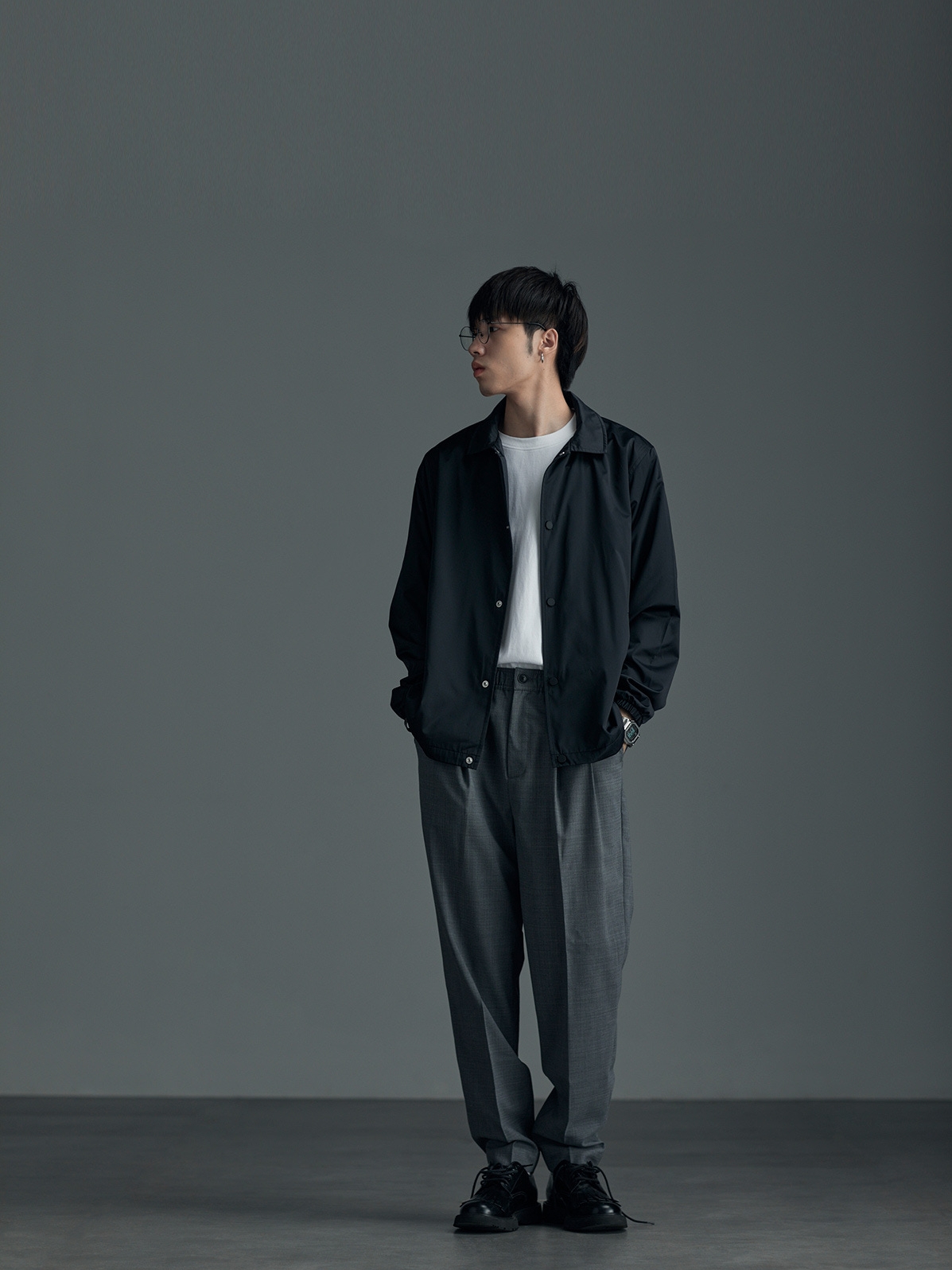上宽下窄休闲版型的小脚裤,裤身亮点在于上半身的暗褶拼接设计,赋予整体的层次感,纯黑色的裤身没有多余的装饰,修身收口的小脚口内搭中筒袜和休闲鞋即可演绎潮流时尚。