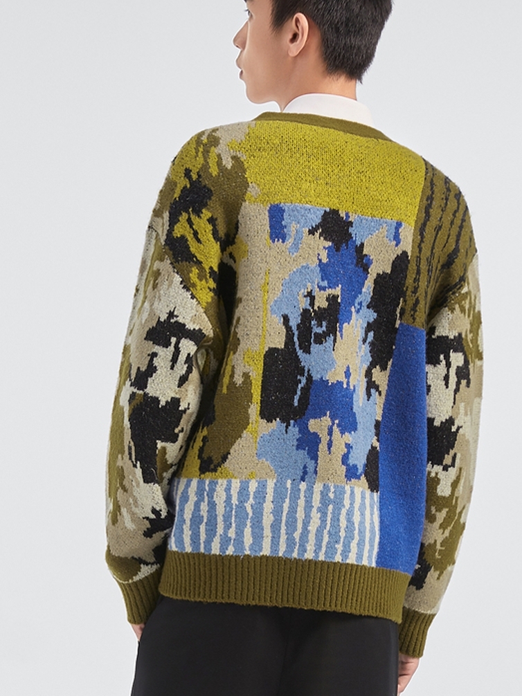 这是一件休闲气息十足的毛衣。我们可以搭配上一条简单随性的小脚紧身牛仔裤,再加上一双灰色的休闲帆布鞋,整体营造出一种洋溢着少女青春气息的休闲之感。内搭方面我们可以选择一件浅棕色的棉质体恤,和手肘部分的拼接材料作出呼应。