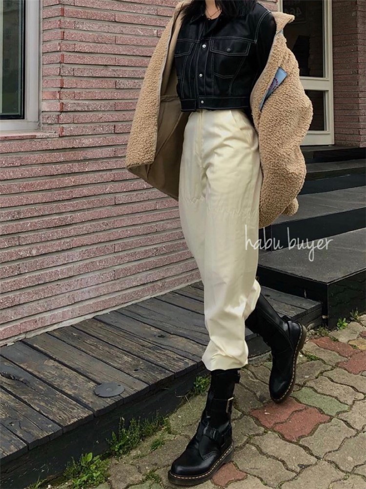 高腰的设计,拉长腿部线条,显瘦效果很好,高腰的版型,很显高挑,修身的剪裁,修饰腿部曲线,上身很有范。