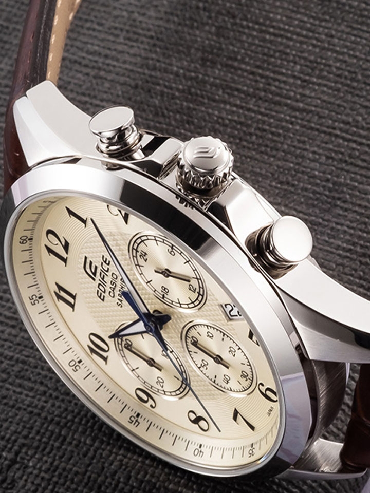 采用酷炫前卫,新颖别致的多功能三眼计时表盘设计,并透过醒目的指针以及数字刻度呈现,让您能够轻松清晰的获取时间。
