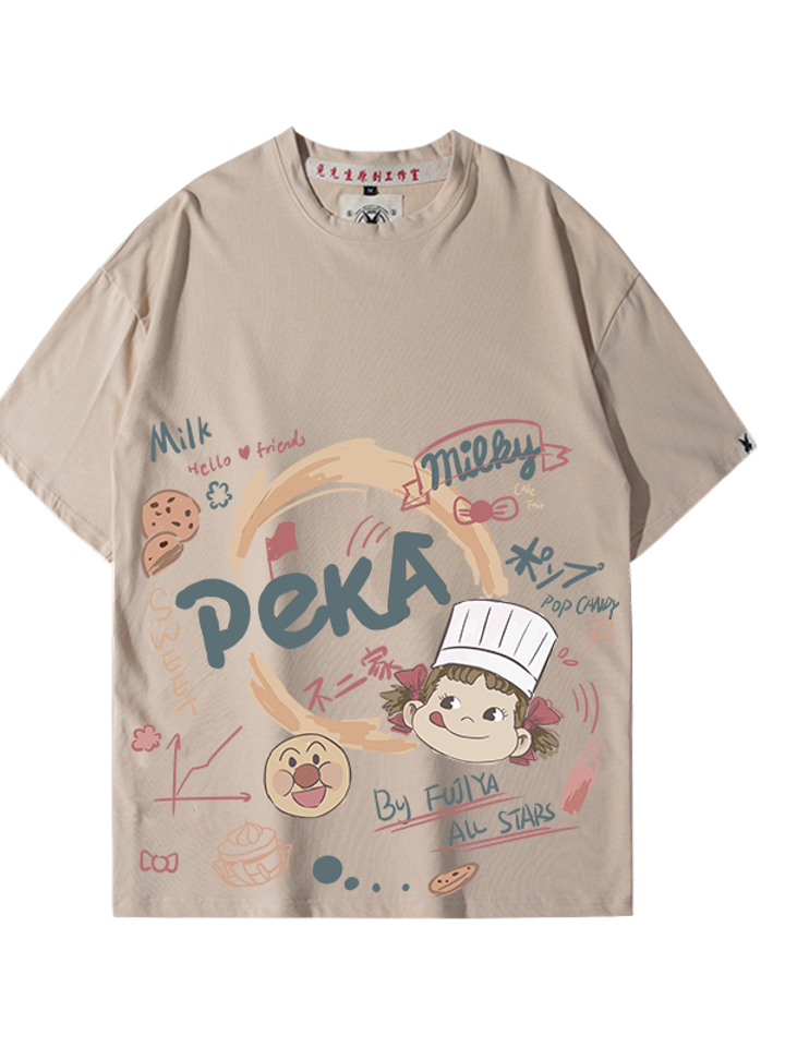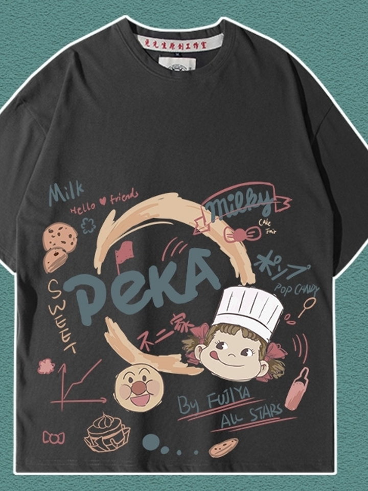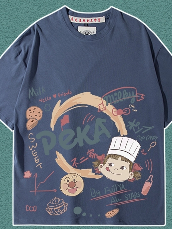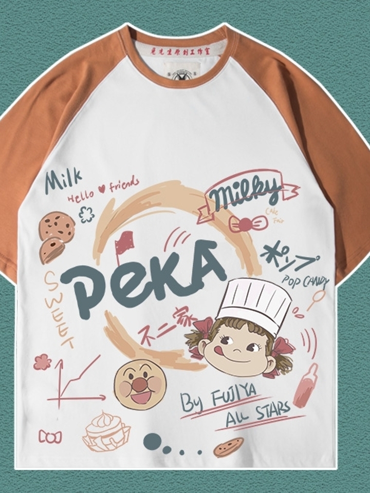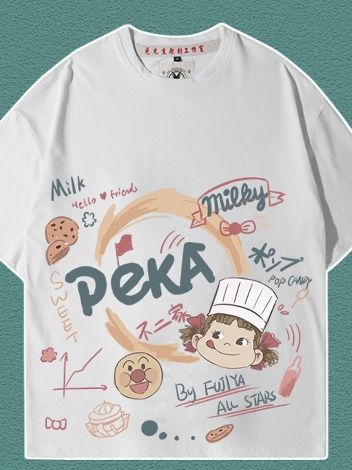 简约而不简单的时尚圆领设计,精致的卡通印花图案,呆萌的很抢眼,颜色鲜亮,生动有活力,优质的面料,手感柔软,贴身舒适。精细整齐的车线,放心穿着,彰显品质。