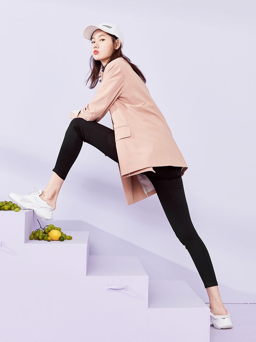 简约的高腰设计,搭配上修身的版型,上身显瘦又显高。
