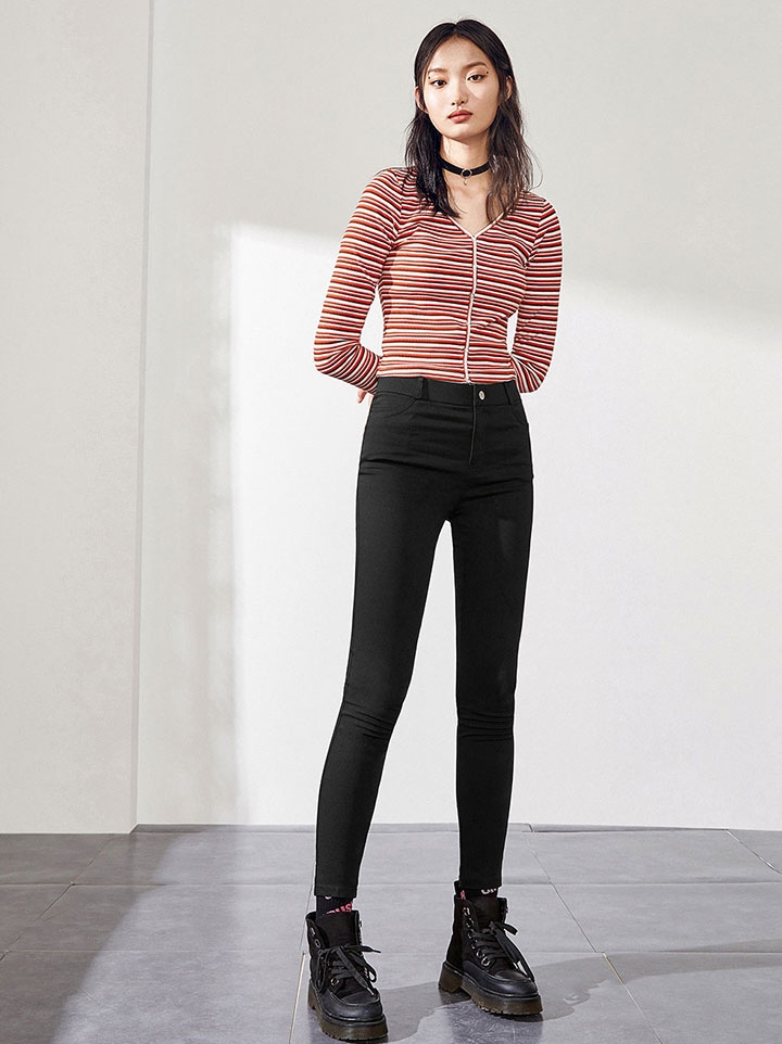 很经典的黑色小脚裤,修身显瘦又百搭! 自然腰设计真的是大爱啊。