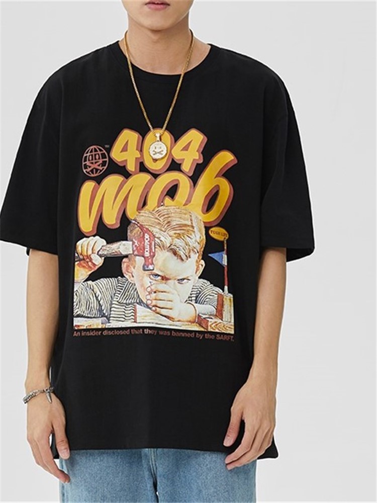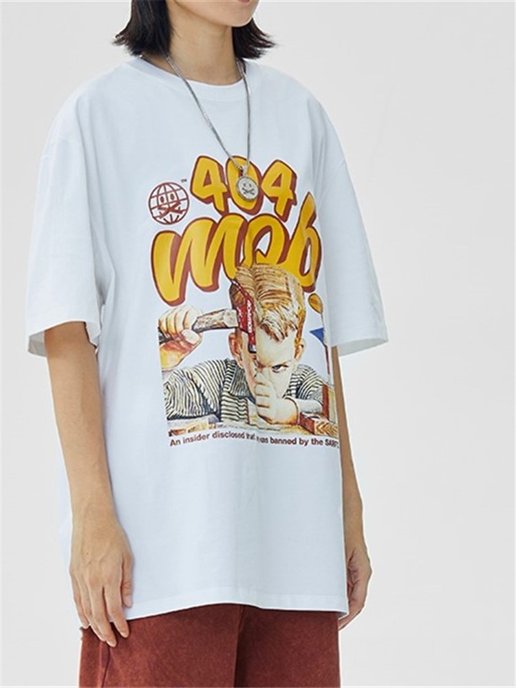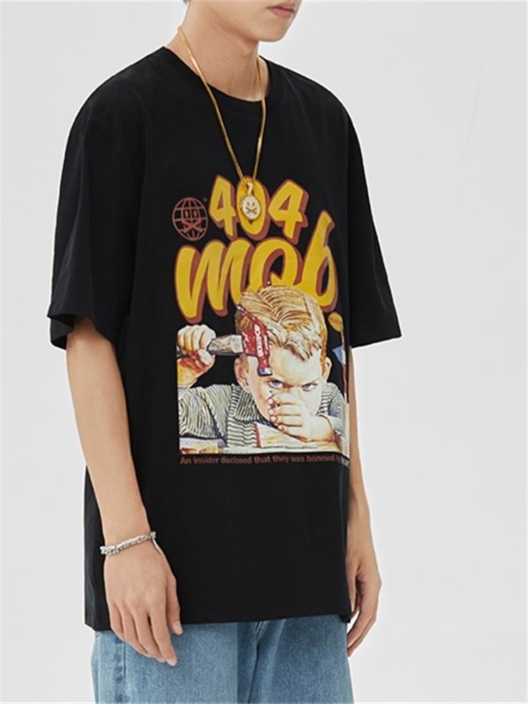 T恤采用了优质的纯棉面料,手感柔软舒适,穿着亲肤透气,胸前的印花图案,充满了复古的气息,宽松的版型,穿着舒适,不挑身材,搭配牛仔裤或者牛仔裤都很不错。