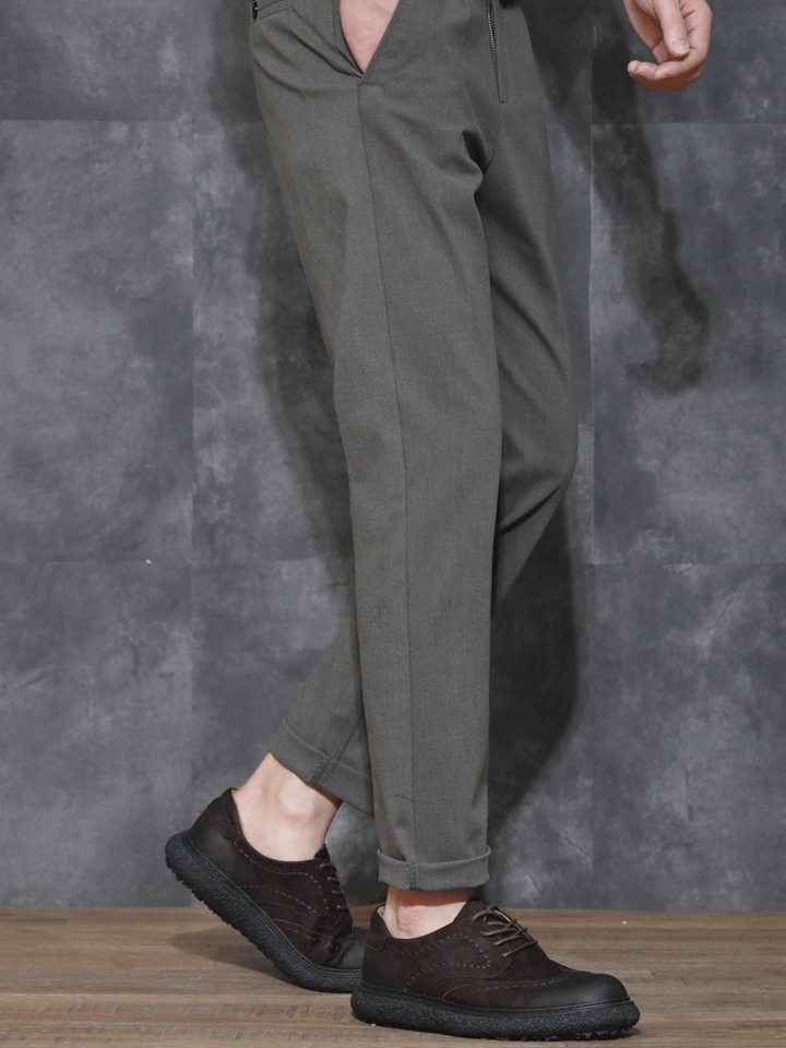 会穿搭的男生总是很吸引女生的视线,如果穿上这条休闲裤,由于本身造型比较个性,上衣搭配简单的白T就可以,简约而不失气质,鞋子色调和上衣一致,轻松打造出色调呼应的高级感穿衣风格。