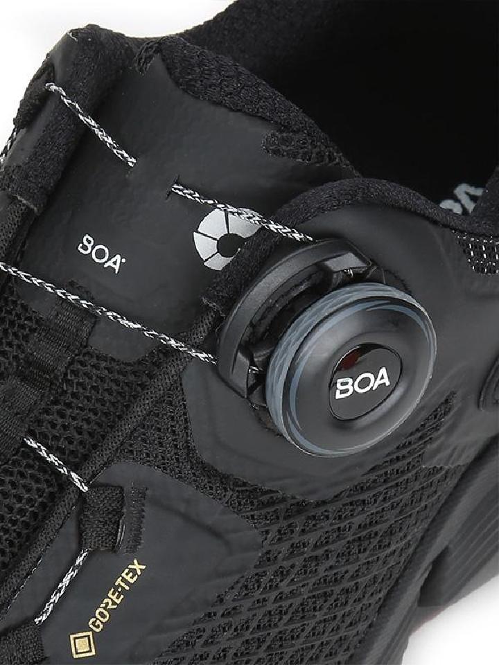 鞋中足两侧及后跟强化支撑,给予双足落地时的支撑保护,全方位稳固探索步伐,鞋大底采用耐磨材料,结合鞋底特殊抓地鞋钉设计,强效抓地,提供跑步助推力。