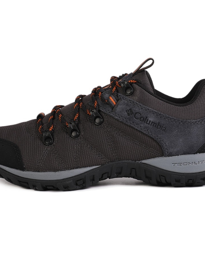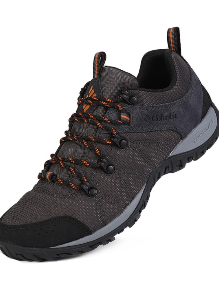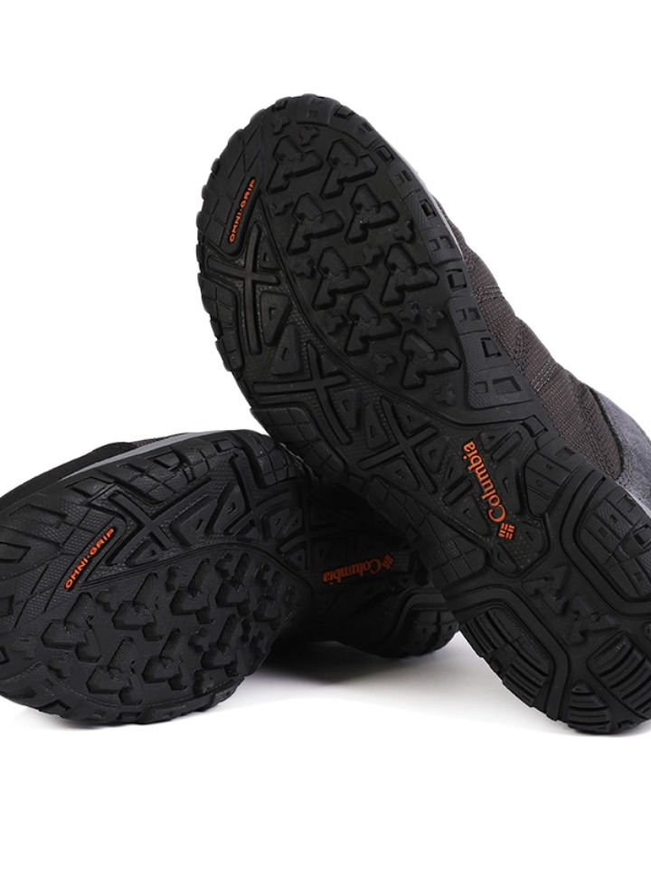 这款徒步登山鞋的减震标识展示,给脚部更好的保护,耐磨橡胶大底,给足底提供良好的保护,缓震鞋垫,排汗透气,增强舒适感,精致两题鞋舌设计,增强防水性,舍标展示,中国制造,哥伦比亚徒步登山鞋,陪你轻松登山。