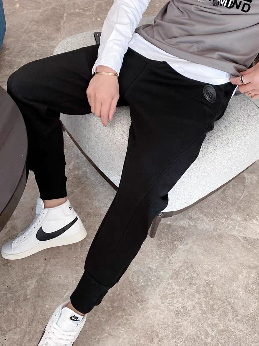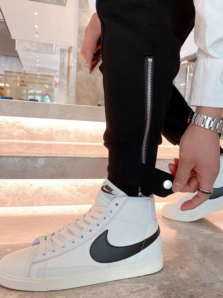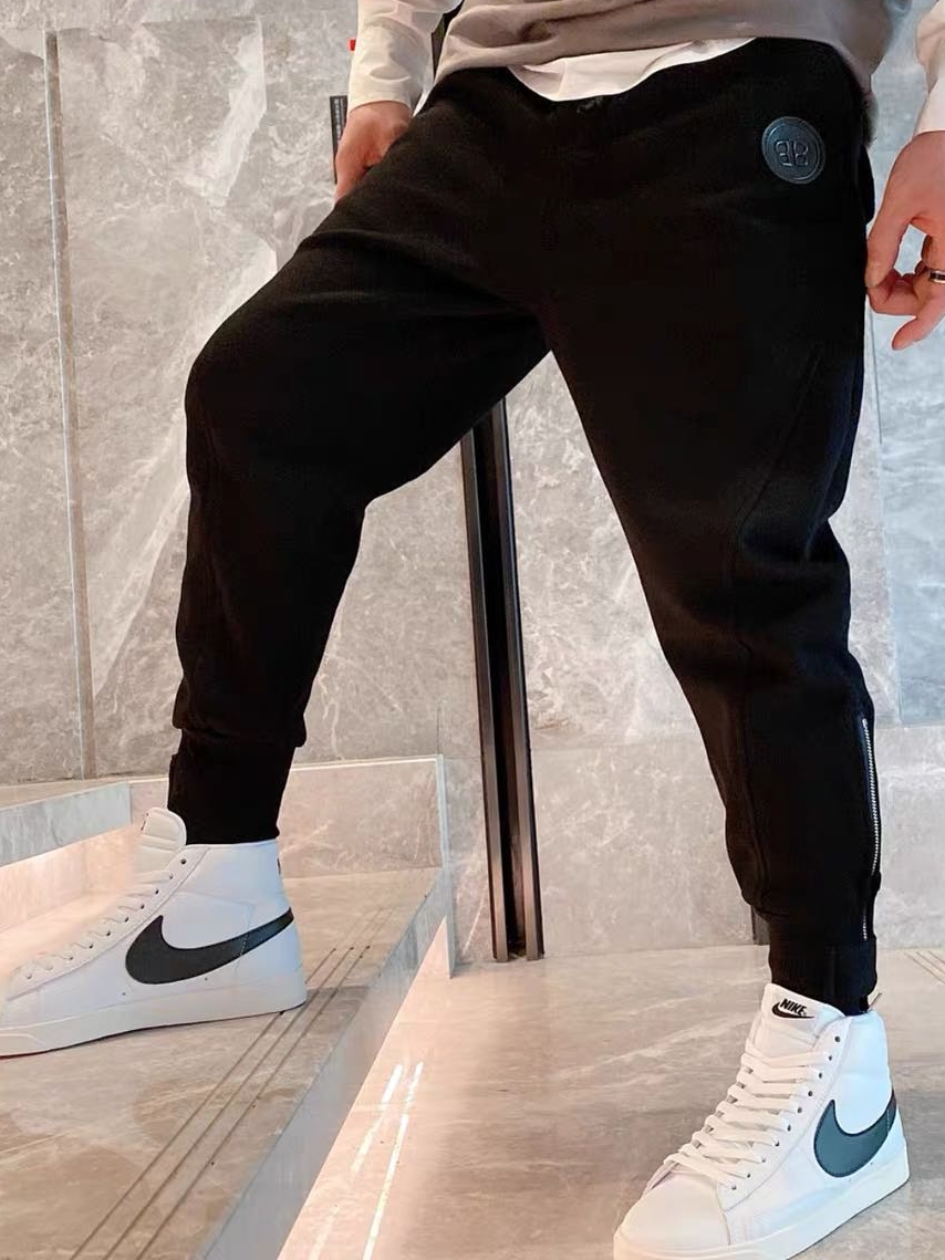 此款男士运动裤收脚束腿设计修饰腿部精美曲线,脚口车线整齐细密,牢固耐穿。