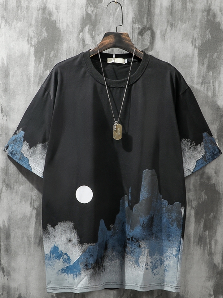 绚烂绽放的花卉印花展现优雅时尚的格调,圆领的设计经典时尚,短袖修饰手臂纤细美感,宽松的版型惬意修饰任何身形,不规则裙摆的撞色拼接穿出假两件感,裙摆开叉显得独特时尚。采用柔软舒适的棉氨面料,非常适合炎热的夏天穿着;前幅的印花犹如一幅素雅的水墨画,独特的墨迹显得儒雅而又时尚。像是行走在风中,穿行与水面。独特的印花彰显个性。