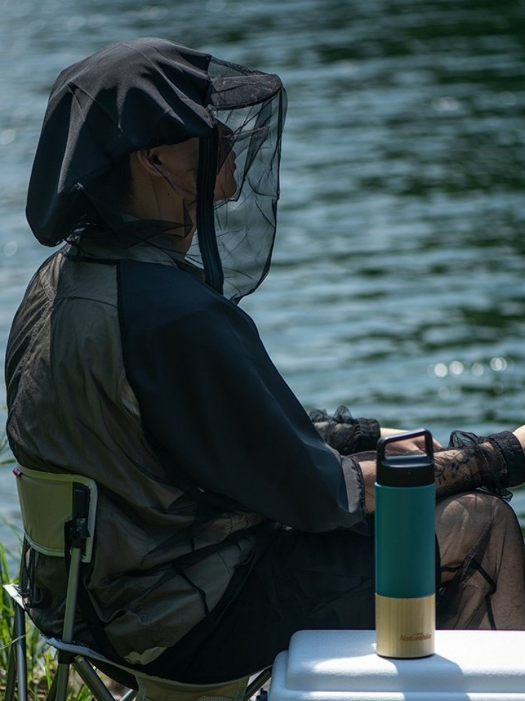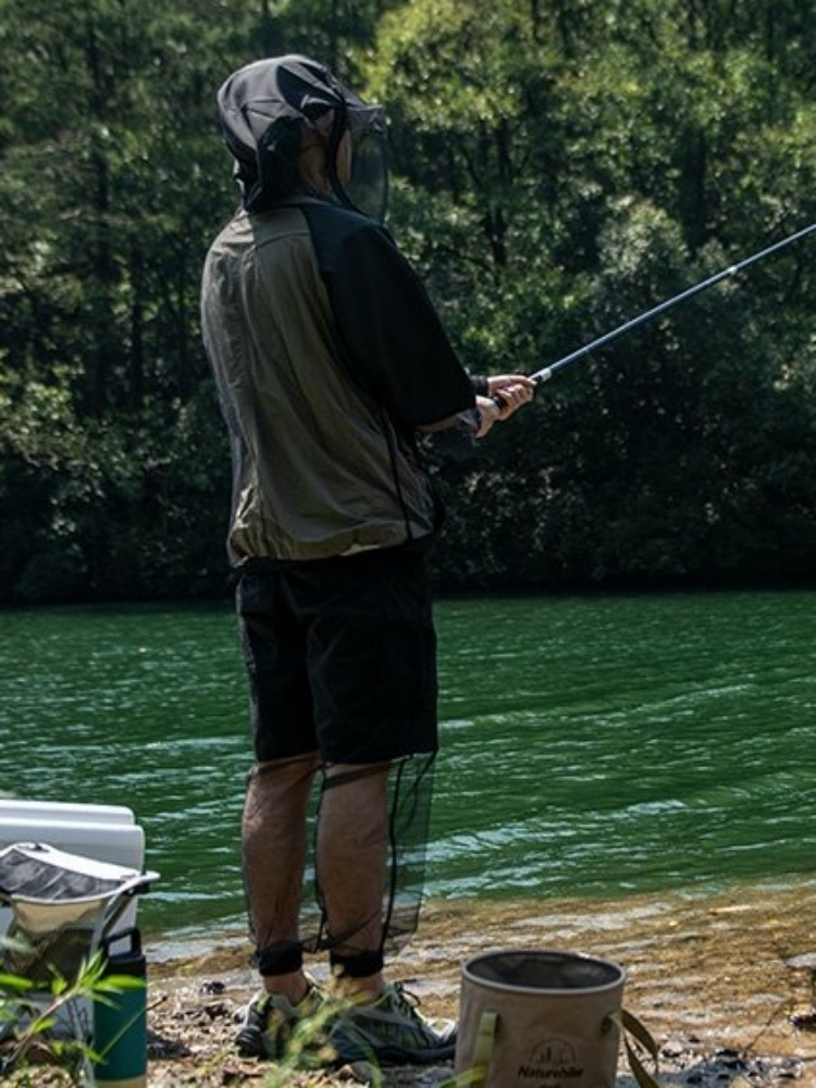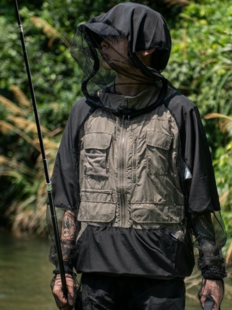 超轻的舒适面料, 轻薄透气,防紫外线。高弹修身包裹身体,钓鱼更自如。