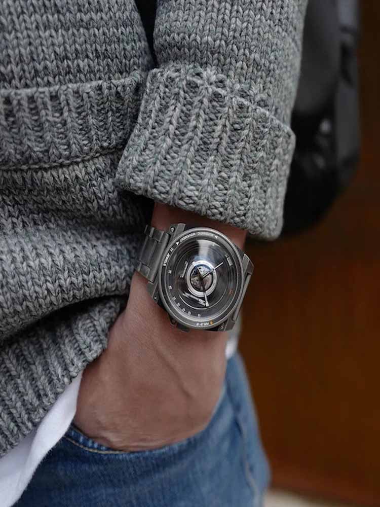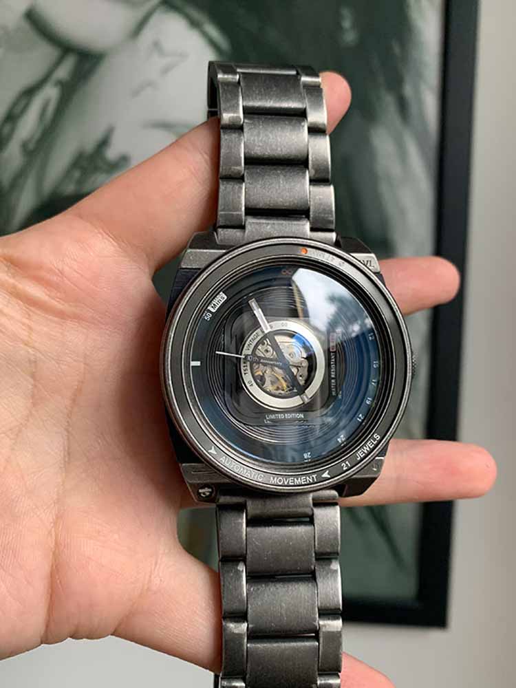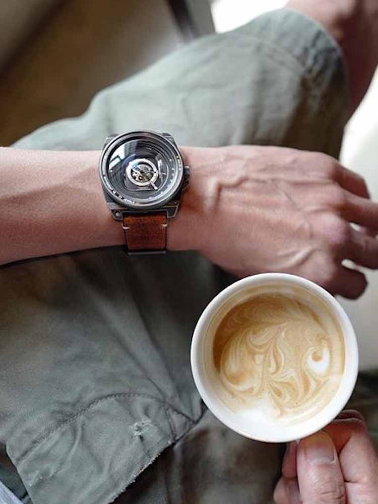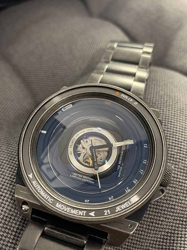 大气简约的圆形表盘彰显出霸气十足的潮男魅力,无数字的指针设计,张扬个性腔调的同时避免撞款的尴尬。机械风的撞色设计极具奢华气息,彰显着佩戴者不俗的品味追求。表带上多孔位的设计,十分贴心可根据自己手腕围度随时调节佩戴的松紧度。