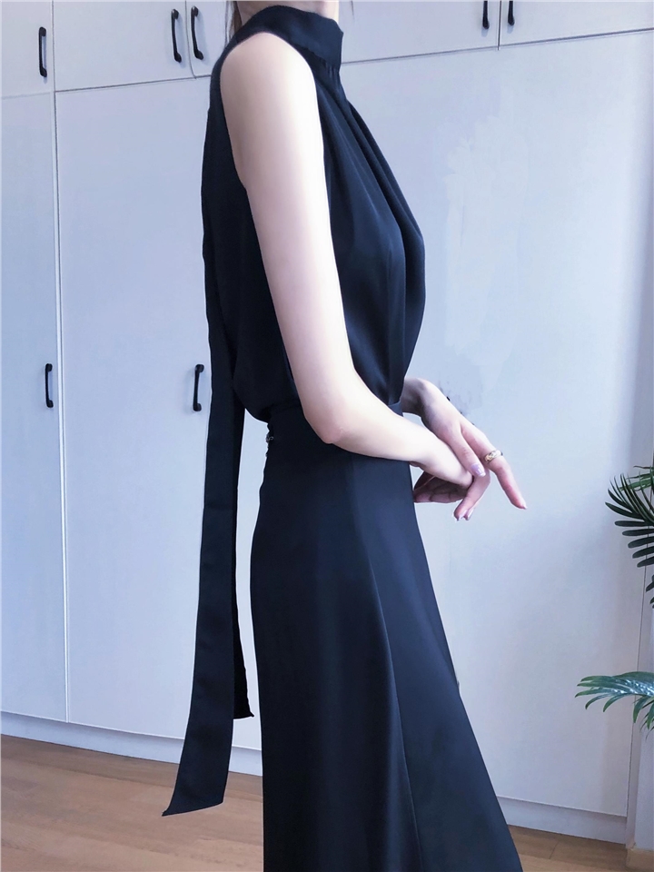 高腰的设计,拉长腿部线条,显瘦效果很好,高腰的版型,很显高挑,修身的剪裁,修饰腿部曲线,上身很有范。