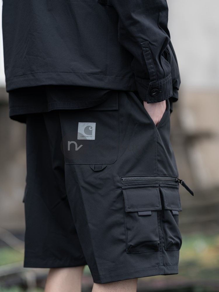 经典的工装又来啦!立体感十足的工装贴袋,搭配上聚酯钎维短裤,轻便透气的同时又不失时尚。立体感突显设计感,弹筋调节口袋,设计感倍増。纯色在夏天更显自然清凉。五分裤的宽松版型,从头到尾的清凉。侧边的撞色贴布,丰富整体的色彩,细微处体现精心工艺。