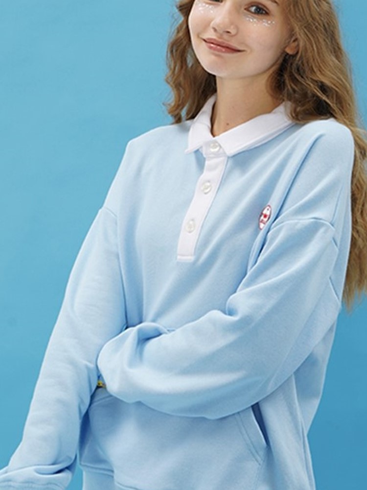 宽松的版型,上身舒适自在,上身舒适自在,胸前的贴布贴布,个性十足,宽松的版型,不挑身材,上身休闲时尚。